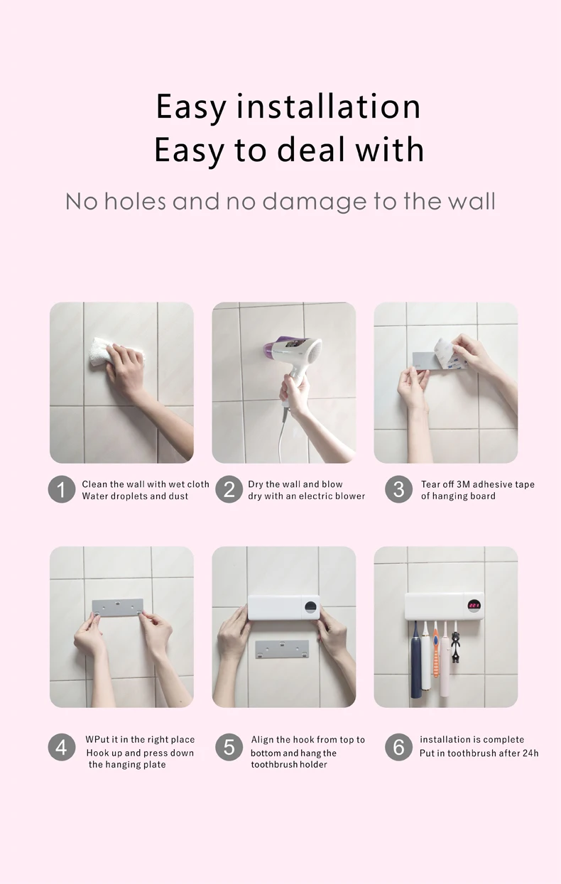 Интеллектуальный УФ-держатель стерилизатора для зубной щетки, настенный, без пыли, для сушки, УФ-дезинфекция, дезинфицирующее средство для зубной щетки, светодиодный дисплей