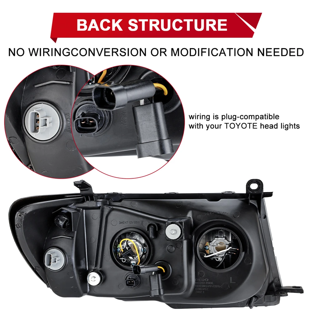 Проводка совместима с вашими головными лампами Toyota. Нет необходимости в преобразовании или модификации проводки. Заглушки прямо в.