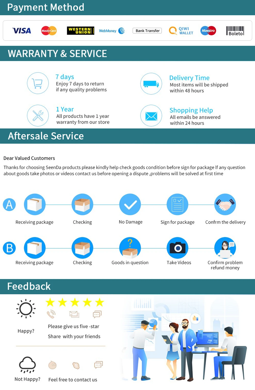 Если вам нравится наш магазин. Пожалуйста, добавьте наш магазин в ваши любимые магазины, нажмите"Следуй", Тогда вы можете получить нашу информацию о новом прибытии и скидках вовремя, Приветствуем дропшиппинг и оптовую продажу! Свяжитесь с нашей службой поддержки клиентов, чтобы получить больше скидок!