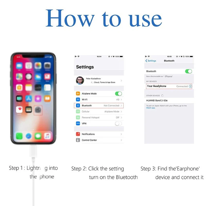 После первого подключения к телефону Включите функцию Bluetooth в разделе «настройки» телефона. Через несколько секунд телефон обнаружит устройство Bluetooth с именем устройства Lighting. Нажмите соединение сопряжения для успешного подключения. Просто подключите автоматически при включении Bluetooth.