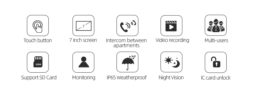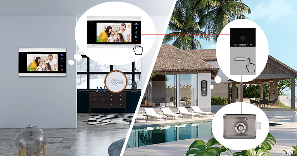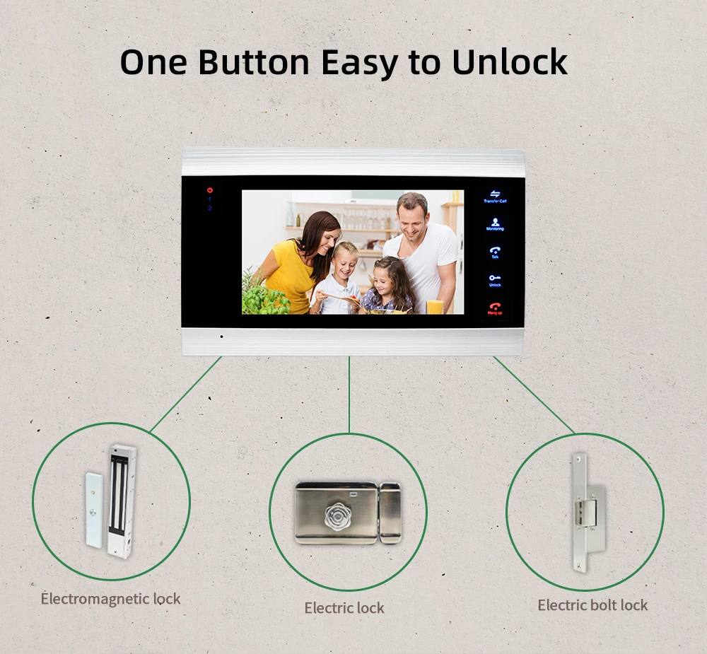 Вы можете использовать внутренние мониторы и IC карты контроля доступа, чтобы разблокировать дверь, что будет более удобным.