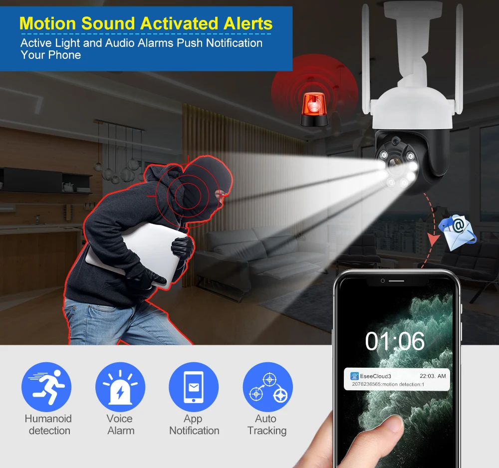 2. Прожектор и сирена: отпугивайте нарушителя, как только они войдут в зону охвата камеры.