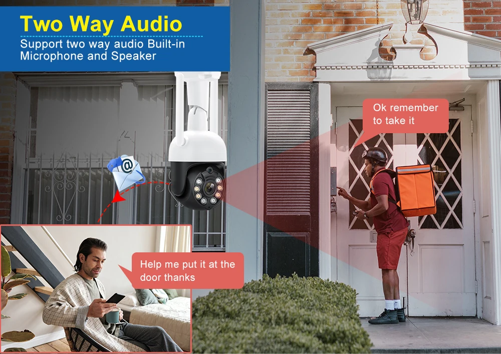 Смотрите, слушайте и говорите с почтальоном или отпугивайте любых подозрительных людей.