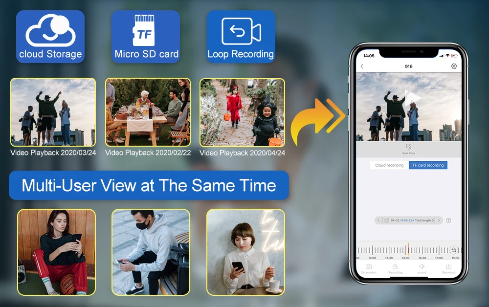 Повышайте безопасность дома с помощью наружной камеры безопасности. Сохраните видео, снятые беспроводными камерами, и просмотрите их в любое время. Или вы можете поделиться им с другими семьей.