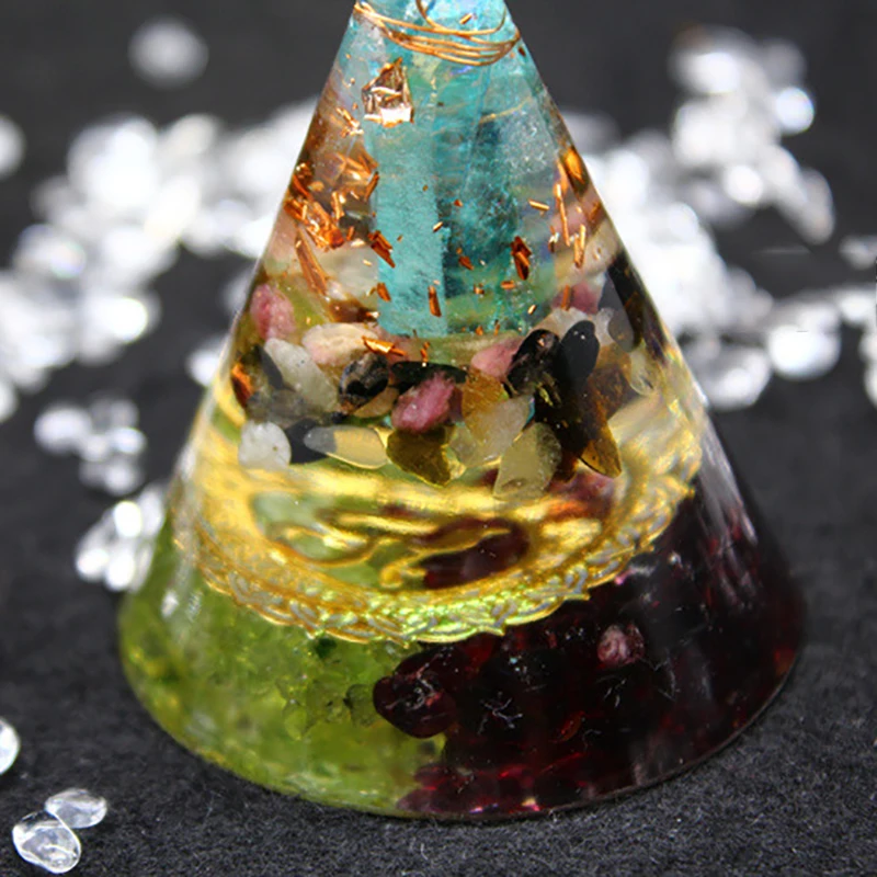 1. Пирамида Orgone ручной работы: изготовлена из смолы, кристаллических камней и медного порошка. Внешний вид каменная пирамида-это модель из смолы, это очень красивый генератор энергии огонита. Поскольку камни и смола из природы, каждое изображение ручной работы будет немного отличаться.