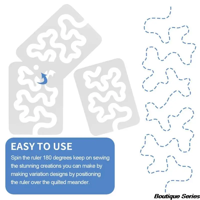 Простота в использовании: Просто установите на место с правильно установленной линейкой швейной машины и следуйте шаблону для фантастического изящного узора. Вращайте шаблон на 180 градусов после каждого завершения.