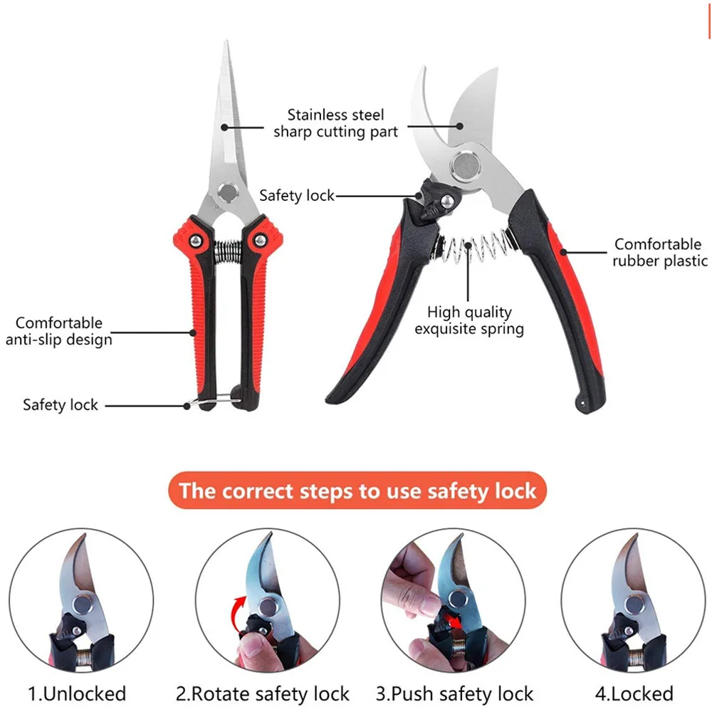 * 1,3 типа обрезки ножниц садовые секаторы, секаторы из нержавеющей стали, садовые Бонсай инструменты, садовые ножницы набор для фруктовых веток, изгороди, фруктов и овощей, растения хромированные лезвия из нержавеющей стали прямые, изогнутый, зубчатый и превосходное мастерство, делают этот набор ножниц доступным в течение очень длительного времени.