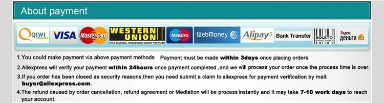Другие способы оплаты (Western Union, MoneyGram и т. Д.), пожалуйста, свяжитесь с нами