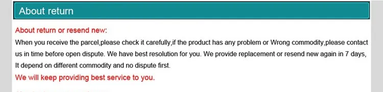 2. Если товар неисправен, пожалуйста, сообщите нам в течение 3 дней с момента доставки.