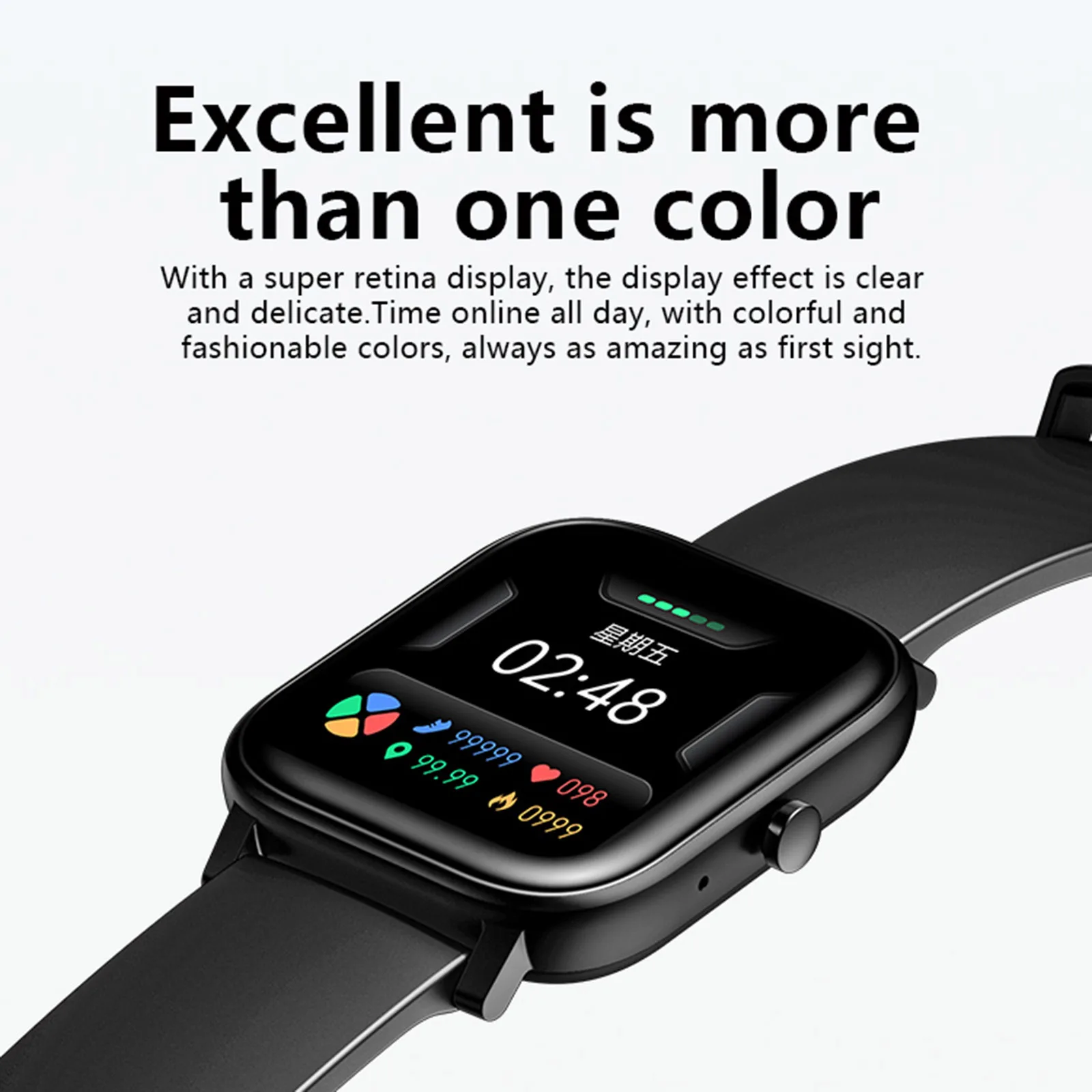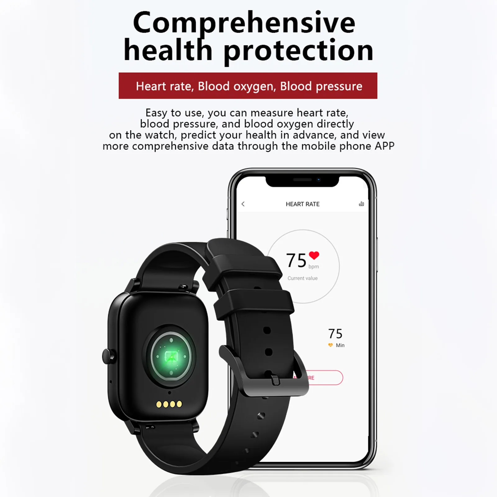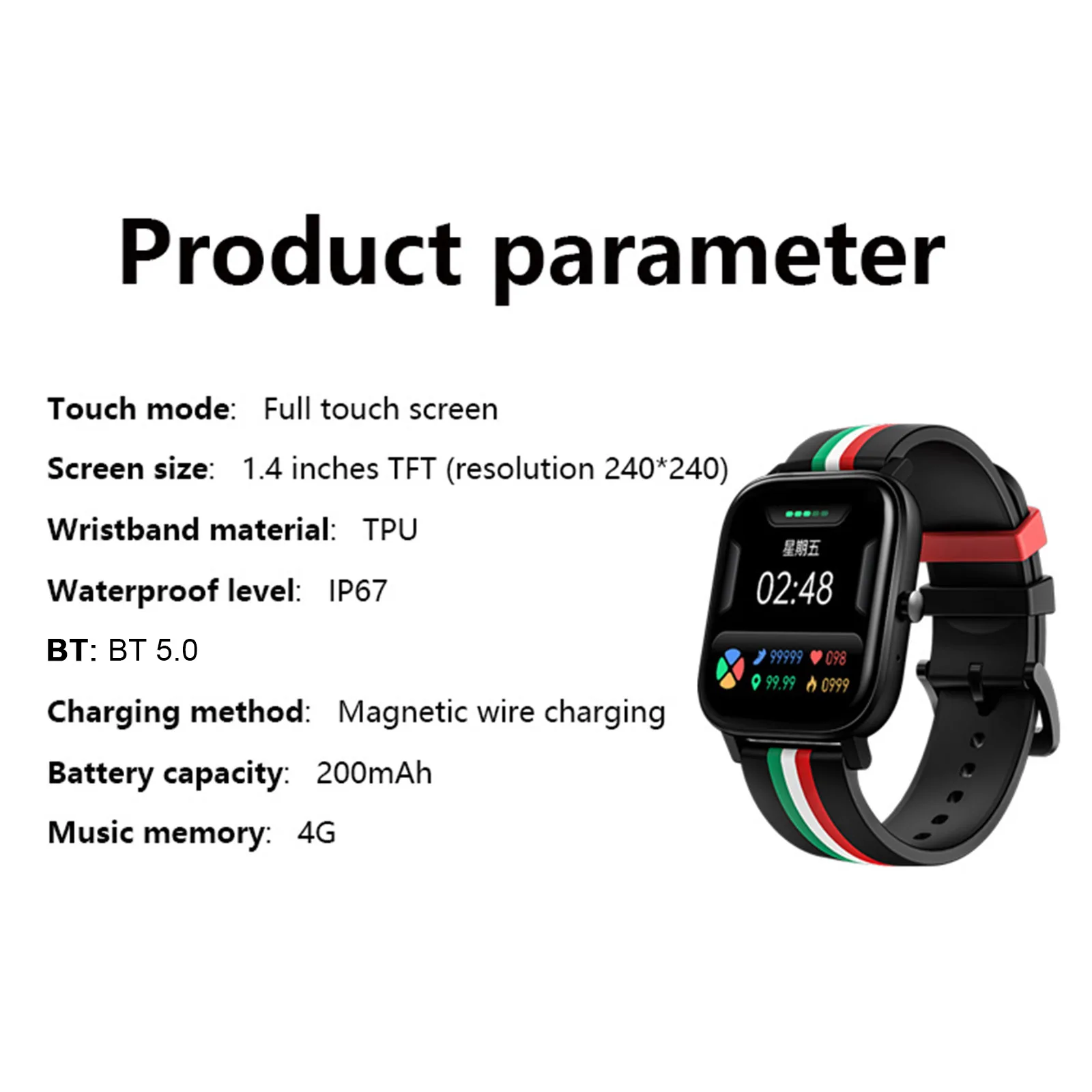 Эти умные часы оснащены контролем сердечного ритма, кровяным давлением, кислородом, мониторингом сна, нажимом сообщений, Полноразмерным сенсорным экраном, 8 спортивными режимами, музыкальным управлением, пультом дистанционного управления, напоминанием о тревоге, звонком BT, напоминанием о сидячем положении, информация о погоде и т. Д. С помощью этого браслета вы можете записывать данные в реальном времени в повседневной жизни, И синхронизируйте эти данные с мобильными телефонами, чтобы вести здоровый образ жизни.