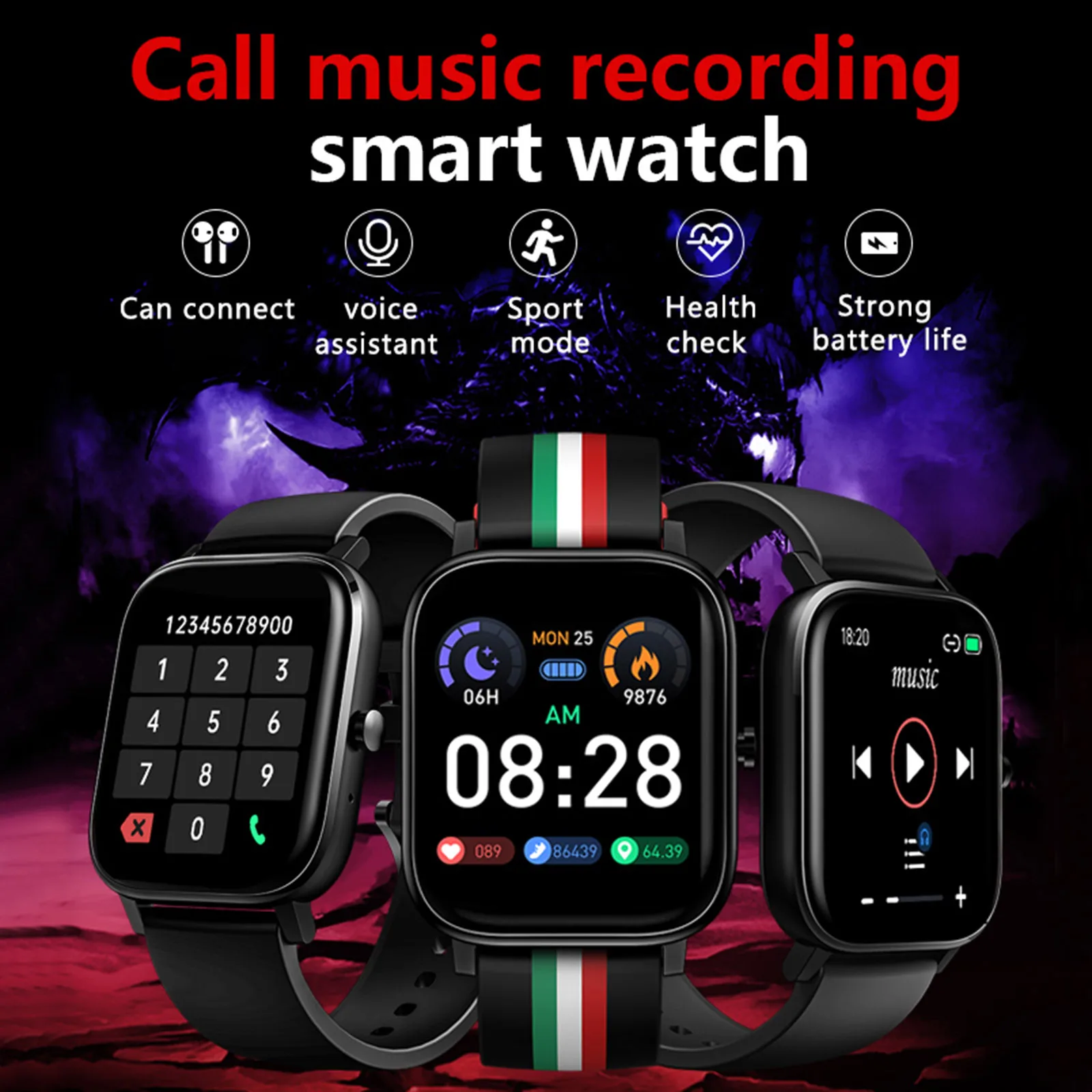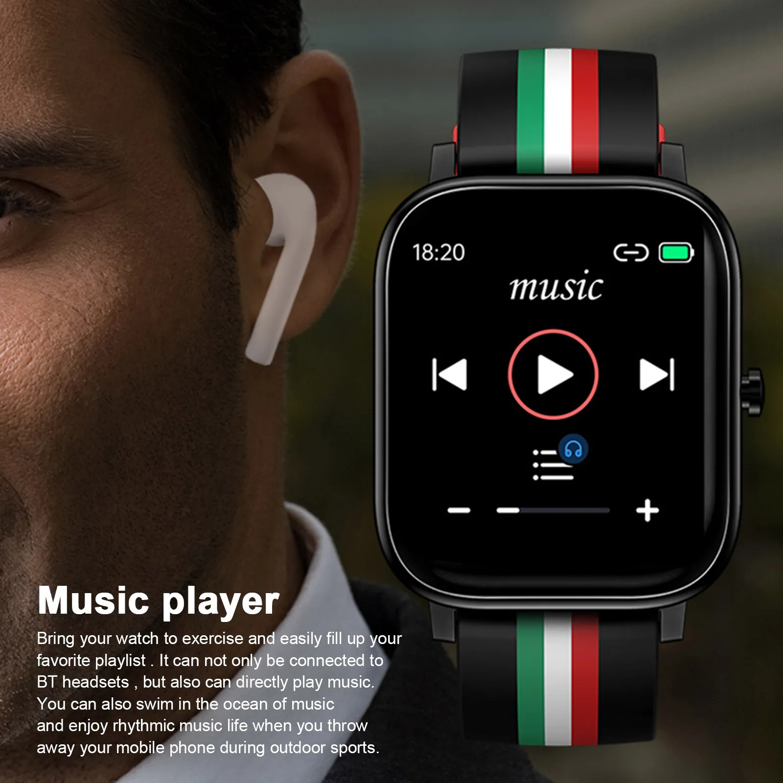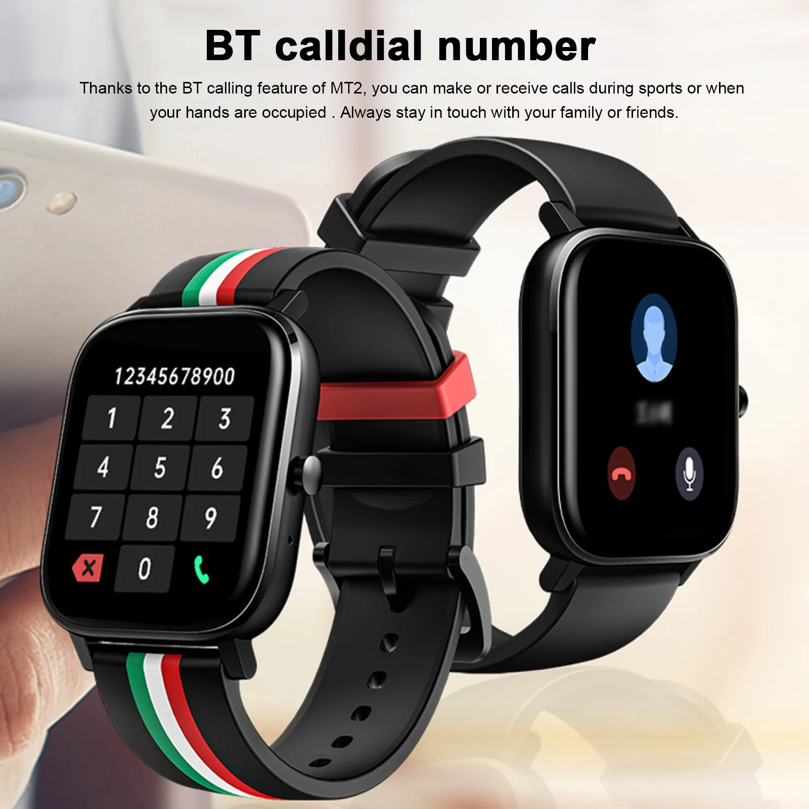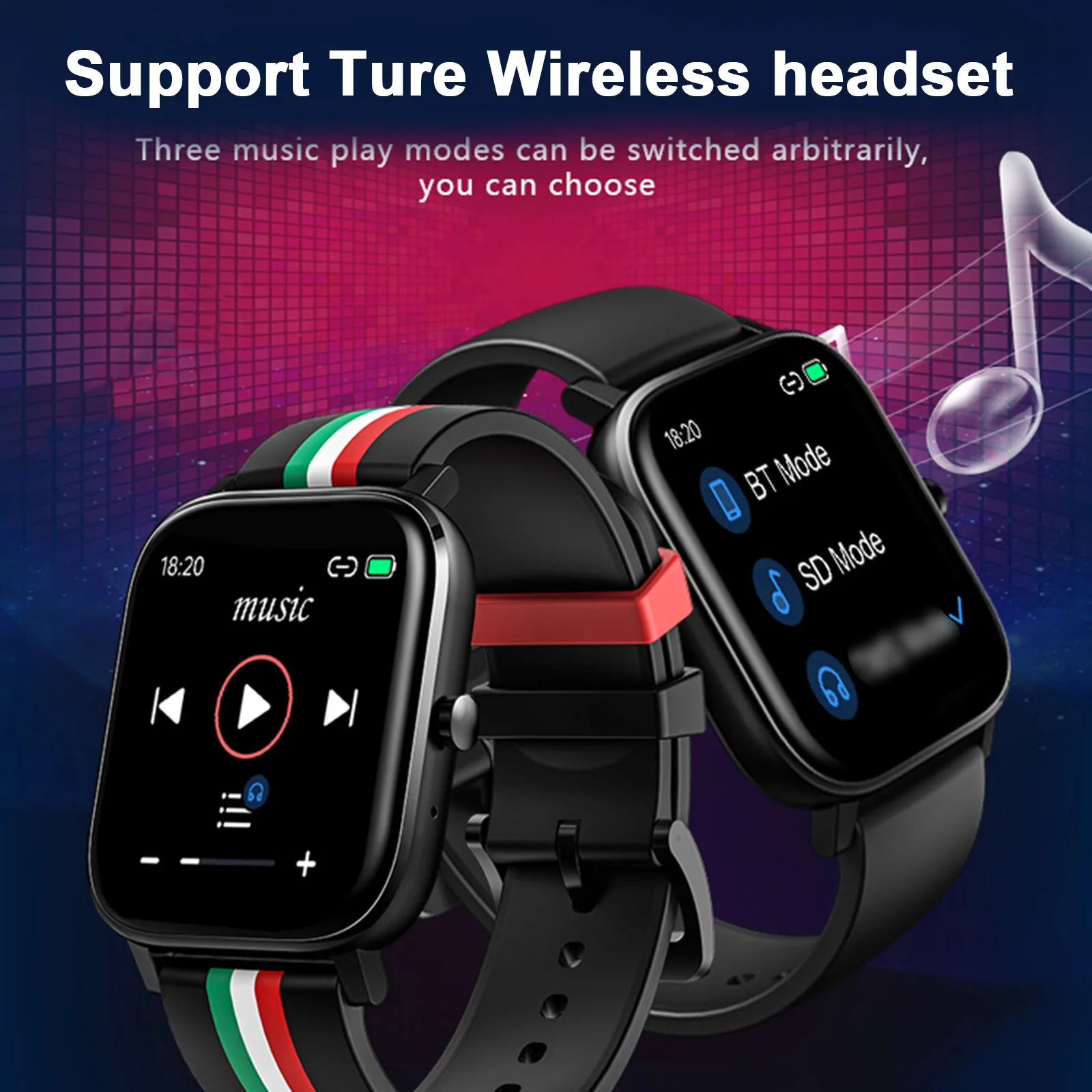Эти умные часы оснащены контролем сердечного ритма, кровяным давлением, кислородом, мониторингом сна, нажимом сообщений, Полноразмерным сенсорным экраном, 8 спортивными режимами, музыкальным управлением, пультом дистанционного управления, напоминанием о тревоге, звонком BT, напоминанием о сидячем положении, информация о погоде и т. Д. С помощью этого браслета вы можете записывать данные в реальном времени в повседневной жизни, И синхронизируйте эти данные с мобильными телефонами, чтобы вести здоровый образ жизни.