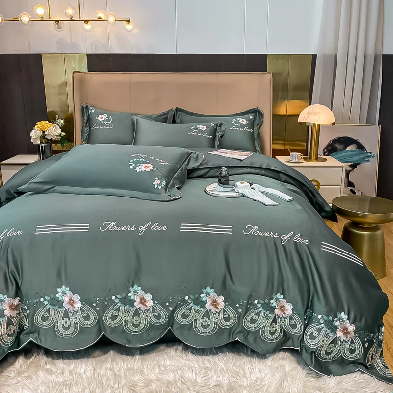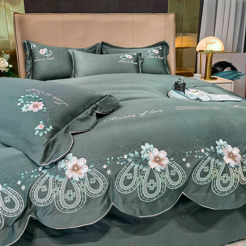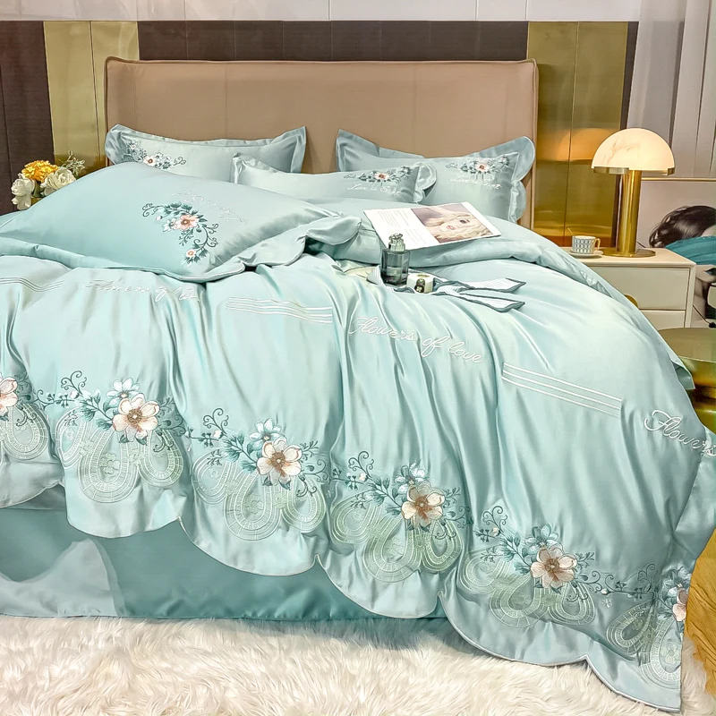 Материал: пододеяльник с верхней стороны изготовлен из атласа. Пододеяльник с нижней стороны и простыня изготовлена из 100% хлопка