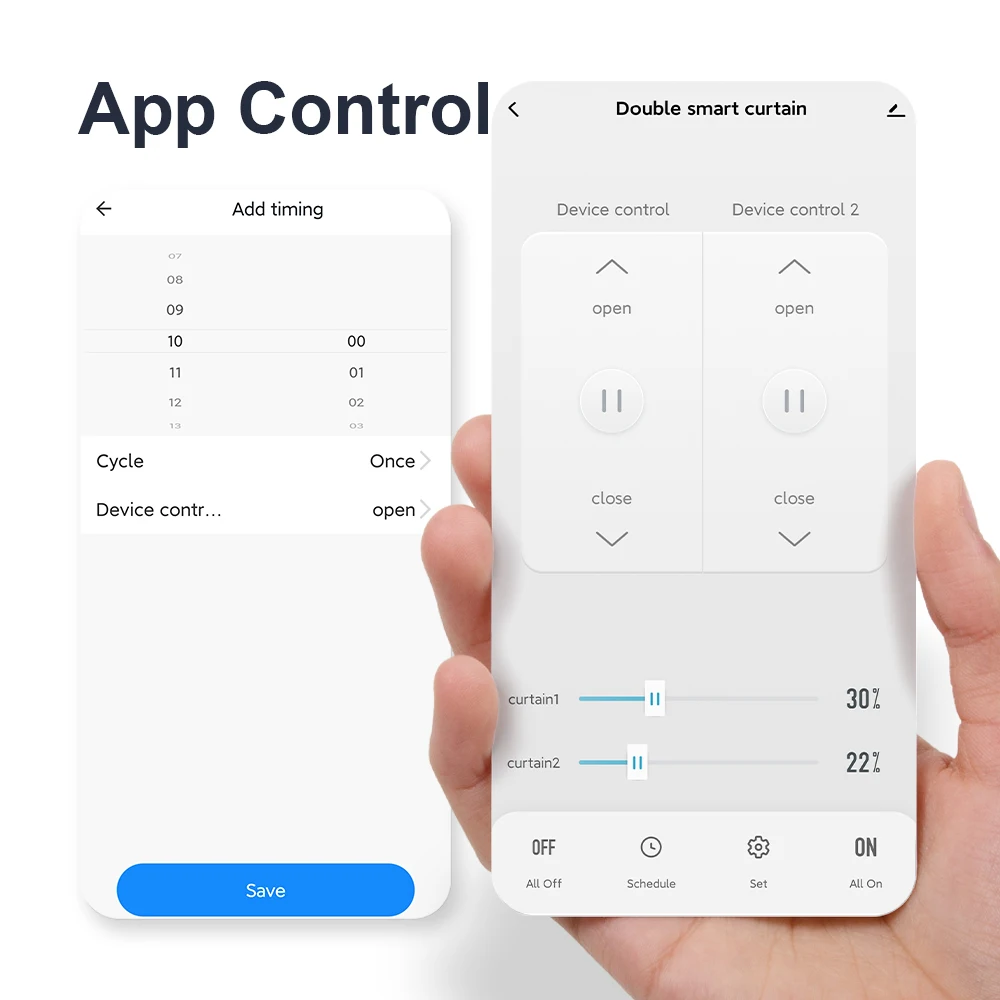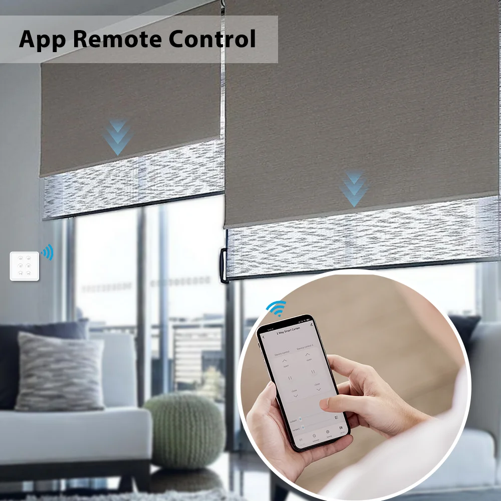 -Этот переключатель doube-кнопочный переключатель с 6 кнопками на панели, вы можете управлять открыванием и закрытием двух штор отдельно.