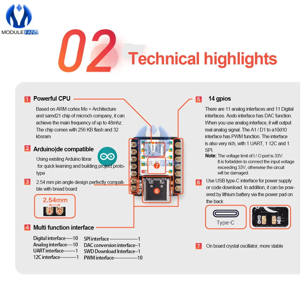 Микроконтроллер Seeeduino XIAO SAMD21 Cortex M0 + Nano 48 МГц SPI I2C интерфейс для Arduino IDE/IOT System Type-C Development Tool
