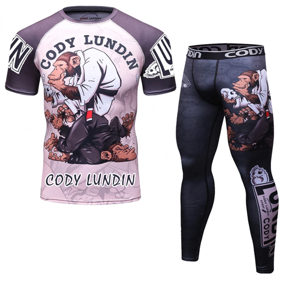 Kickboxing Рашгард джиу джитсу футболки + штаны наборы Рашгард для мужчин пот тренажерный зал Обучение ММА Боксерский набор Муай Тай футболка