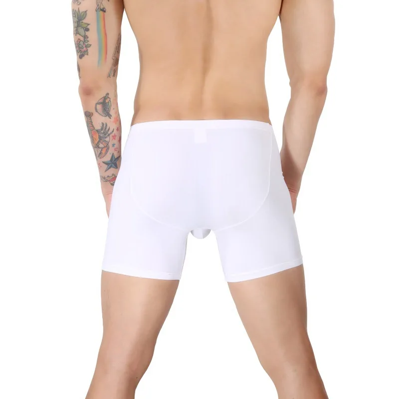 Нижнее белье с большим мешочком, мужские боксеры, пуш-ап, мужские длинные шорты, ледяной шелк, трусы, антифрикционные спортивные трусы, белые, черные, нижнее белье