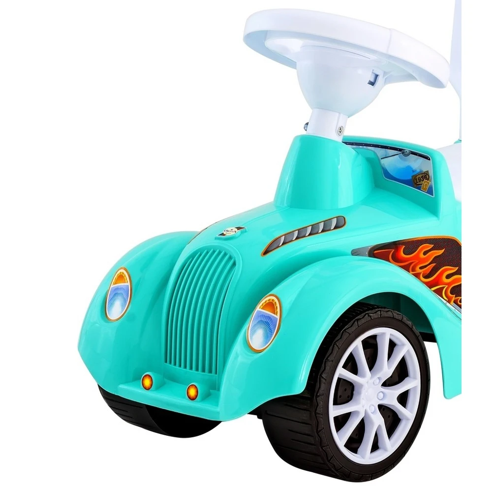 Для любителей ретро представляем машинку в ретростиле. Изящные, утонченные формы каталки, лаконичное сочетание цветов понравятся любителям классики. Конструкция каталки сделана таким образом, что детская машинка полностью защищена от переворачивания или других происшествий на дороге. Каталкой управлять предельно просто, это поймет даже самый маленький ребенок. Ребенок может садиться на удобное сиденье, отталкиваться ножками и ехать, держась за руль каталки и поворачивая передними колесами. Каталка сделана из высококачественного пластика, который не подвержен перепаду температур, не деформируется и не выгорает под солнцем. Езда на каталке стимулирует ребенка к активным движениям и развитию. В процессе игры развивается общая моторика, умение управлять своим телом. В процессе езды ребенок познает окружающий мир, фантазирует и развивает воображение. Очень устойчивые, широкие и проходимые колеса легко справятся с любым покрытием дорог. Крутящиеся большие колеса позволяют ездить самому, катать машину руками или возить за веревочку. Эту каталку можно использовать и дома, и на улице. Стильный дизайн покорит с первого взгляда и Ваш малыш не захочет расставаться с каталкой. Под сиденьем каталки имеется багажное отделение, в которое Ваш ребёнок может сложить свои любимые игрушки. На руле - клаксон. Максимальная нагрузка 25 кг. Рекомендуется для детей от 10 месяцев.