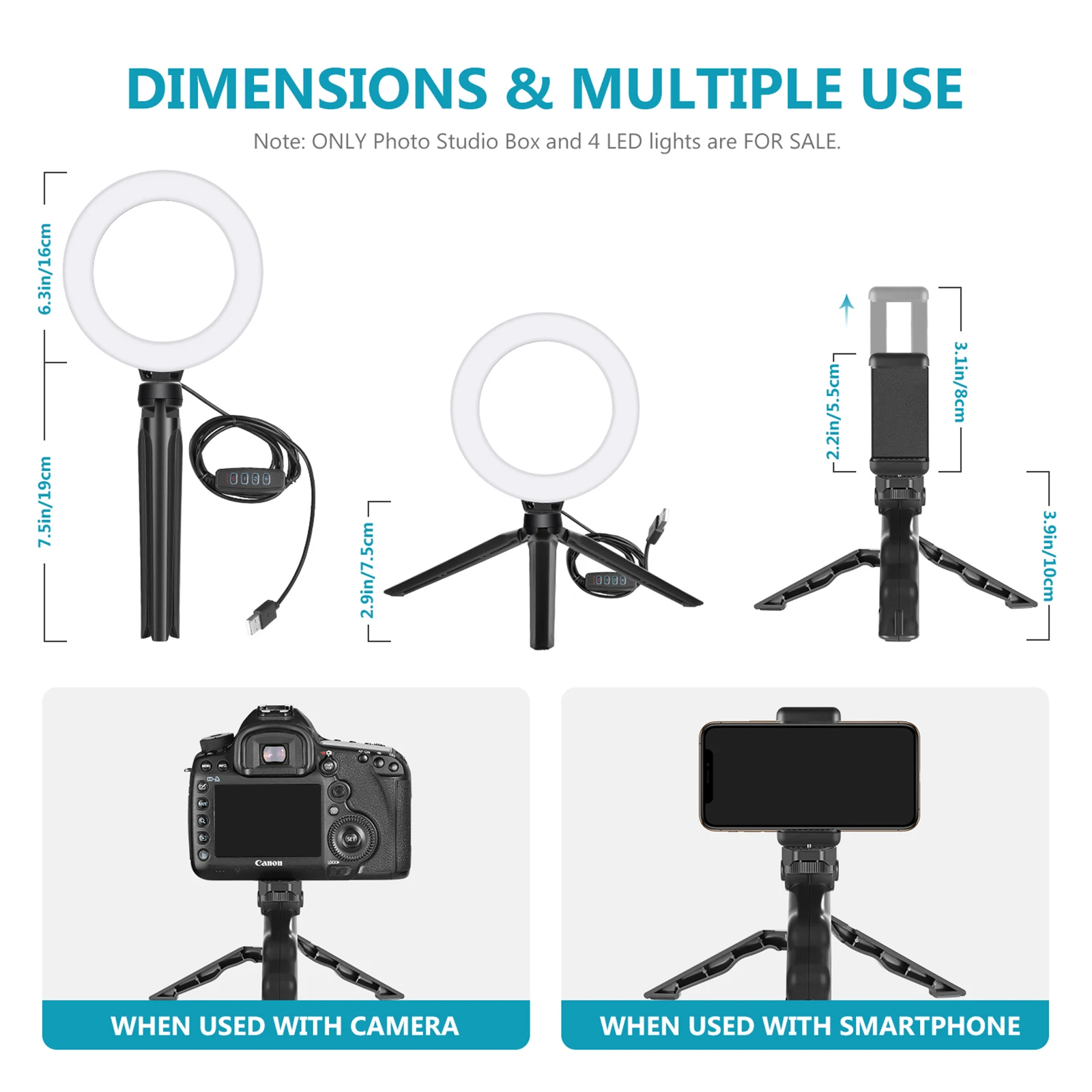 Светодиодный кольцевой светильник с регулируемой яркостью: 4 кольцевых светильника s всего 2400LM (64 шт. светодиодный светильник, CRI 85, 6 Вт 100лм/Вт каждый светильник) С 3 светильник ing режимов (2800K-3200K; 5000K-5400K; 6000K-6400K) и регулируемой яркостью в каждом режим, чтобы соответствовать вашим различным съемки товара требования