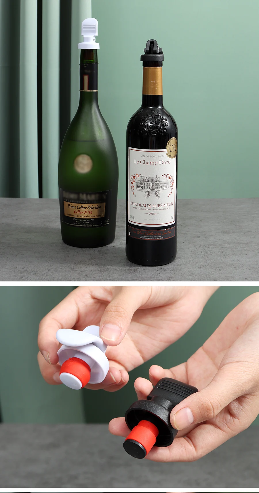 4. PP фиксатор материала, пищевой силиконовый уплотнительный колпачок, 360 градусов близко к рту бутылки, хороший эффект герметизации, герметичный, нетоксичный и экологически чистый. Маленький и светильник, простой дизайн, не занимает места. Конструкция под давлением, когда ручка отжимается, пробка бутылки достигает эффекта расширения и уплотняет рот бутылки.