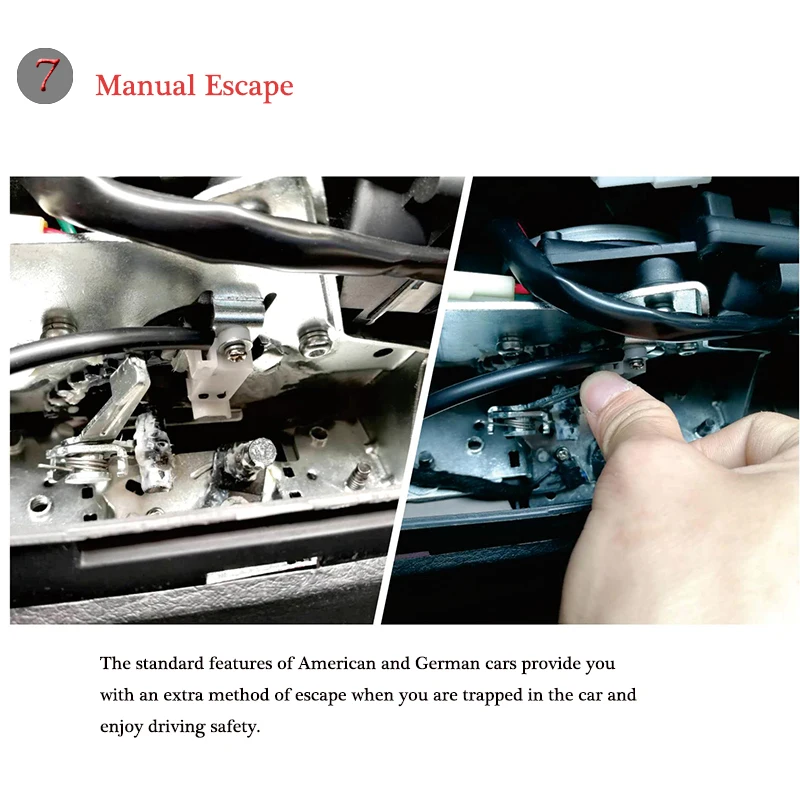 Стандартные Особенности американских и немецких автомобилей предоставляют вам дополнительный метод побега, когда вы оказались в ловушке автомобиля и наслаждайтесь безопасностью вождения.