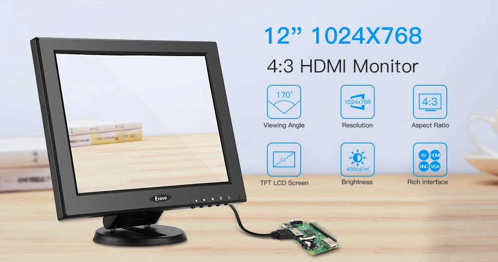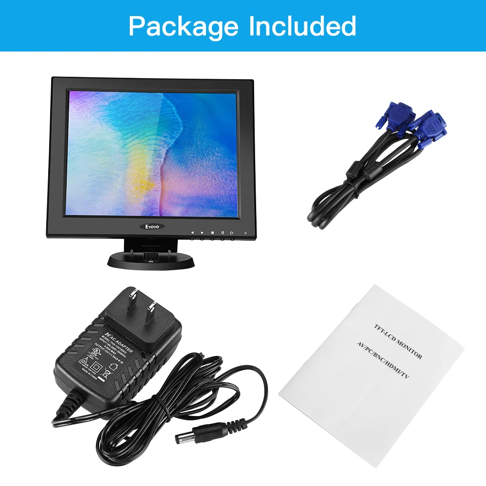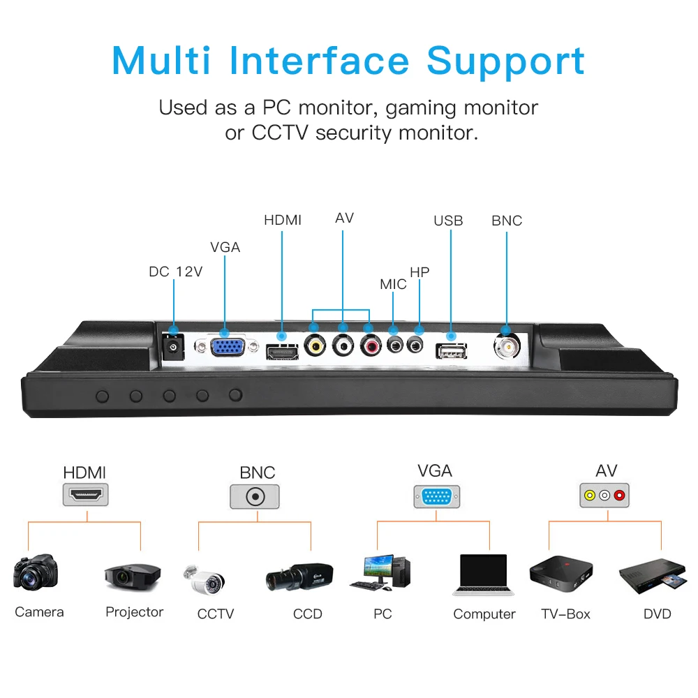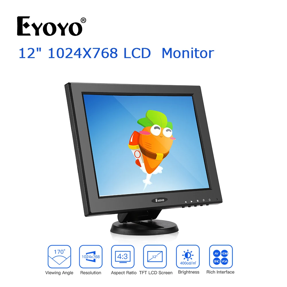 EYOYO 12 Inch Colorful 1024x768 TFT LCD Screen HD Monitor HDMI VGA AV BNC for PC CCTV Security Display
