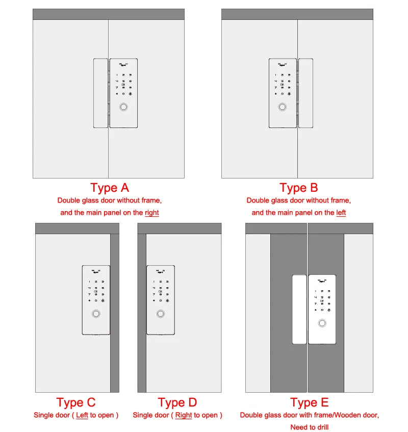 ● Подходит для многих дверей: нажимная тяга, рама, Безрамная стеклянная дверь, двойная стеклянная дверь, одиночная стеклянная дверь, раздвижная дверь и т. д. (с толщиной 8 ~ 12 мм).