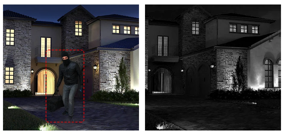 Благодаря двум встроенным прожекторам ваше ночное видение теперь светится в полноцветном режиме. Цветной режим также предлагает наружное освещение для вашего дома.