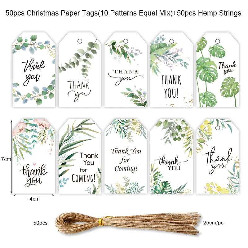 50 наборов, благодарим вас, подарочные бирки с зелеными листьями, украшения для свадебной вечеринки, бирки с веревкой