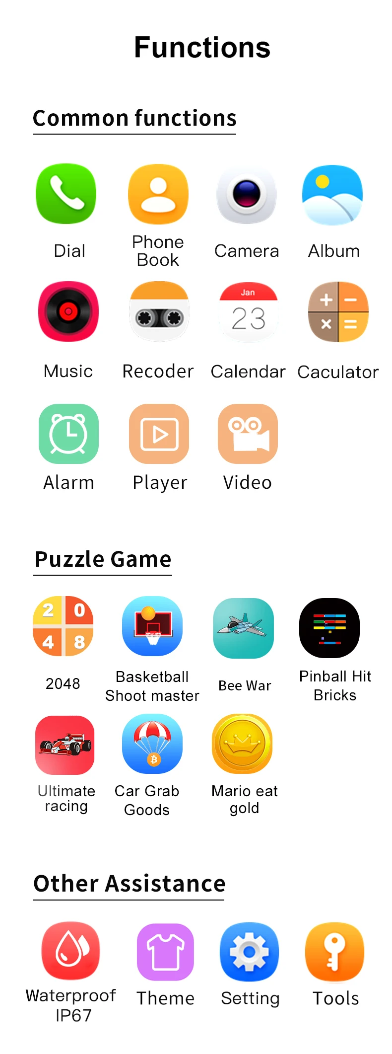 Уровень водонепроницаемости: IP67 водонепроницаемый(Вы можете носить его во время дождя, мыть руки, но не кладите его в горячую воду, плавать и принимать ванну)