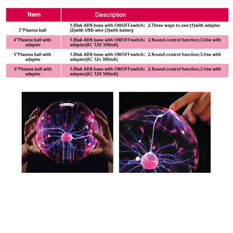 Он может быть оснащен адаптером и преобразовывать источник питания в источник питания USB. Его оболочка представляет собой высокопрочную стеклянную оболочку, шар заполнен редким инертным газом, а в центре стеклянного шара находится черный Сферический электрод. В нижней части мяча есть осциллирующая печатная плата. Низковольтный постоянный ток 5 в преобразуется в высоковольтное высокочастотное напряжение через Преобразователь мощности и применяется к электродам. После включения, дуга, образованная электродами и высоковольтное возбуждение инертного газа, производит светильник, таким образом, генерируемый светильник похож на сияющее свечение, яркое и сияющее, очень красиво в темноте.