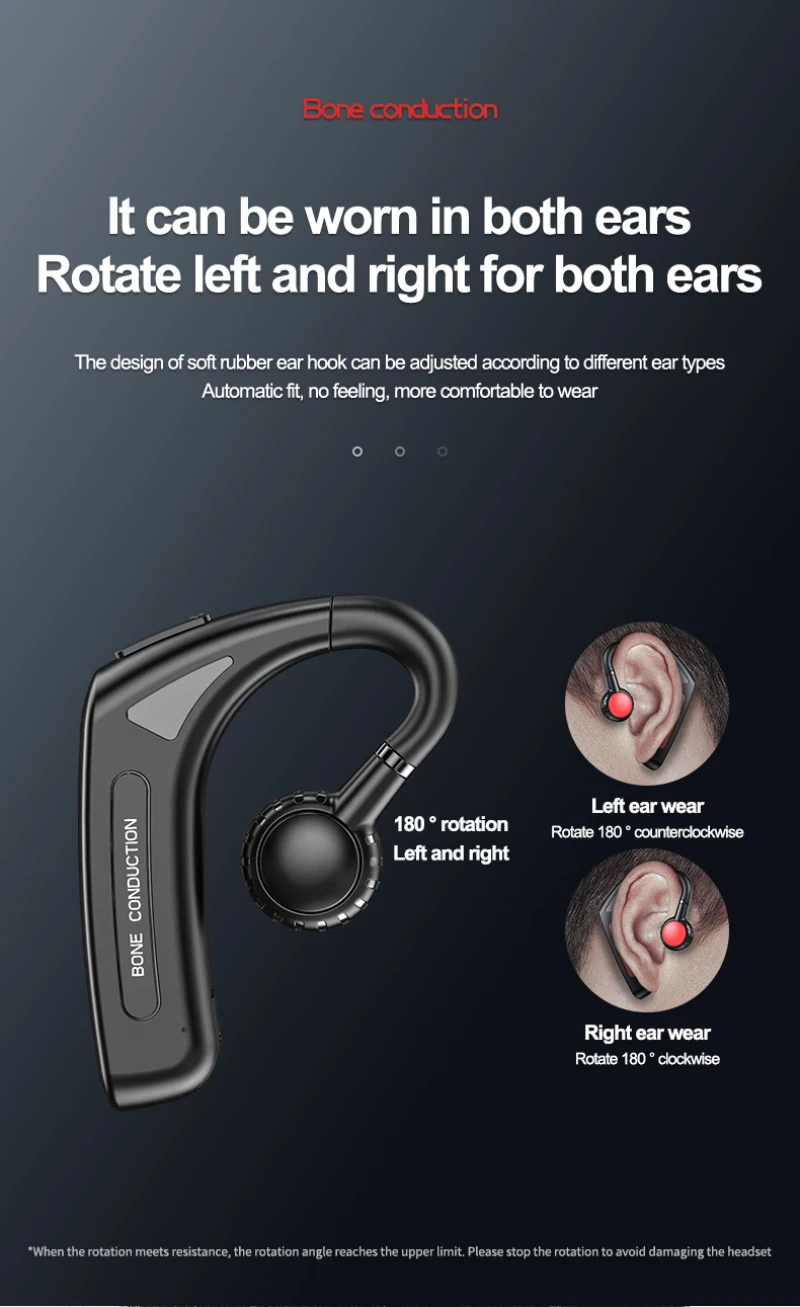 3. Сверхлегкий и удобный дизайн, эргономичные вкладыши в форме ушей и петли для ушей обеспечивают комфорт и отсутствие тяжелых ощущений даже после длительного ношения, рукоятка с поворотом на 180 градусов поворачивается за угол и подходит для этой гарнитуры в правом или левом ухе.