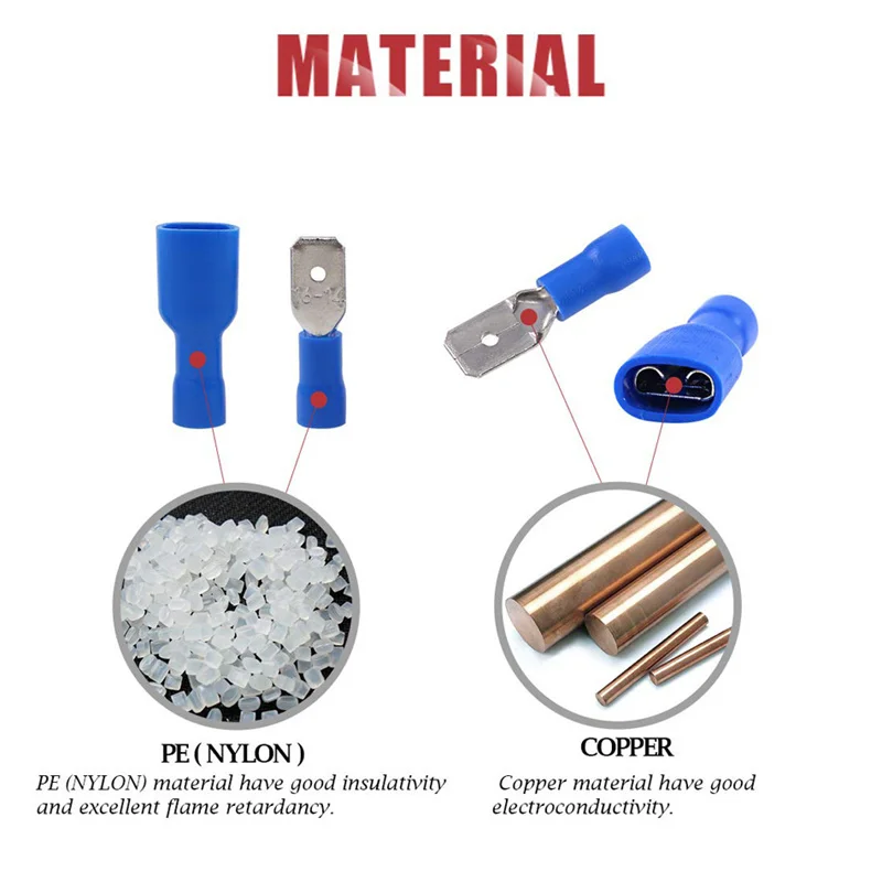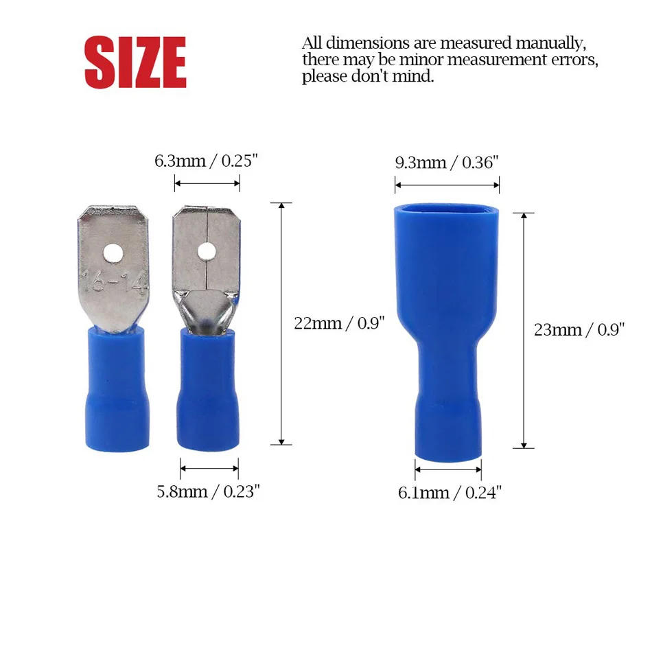100 шт. 50 пар 6,3 мм 16-14AWG Женский Мужской электропроводка разъем ОБЖИМНАЯ Изолированная клемма Лопата синий FDFD2-250 MDD2-250