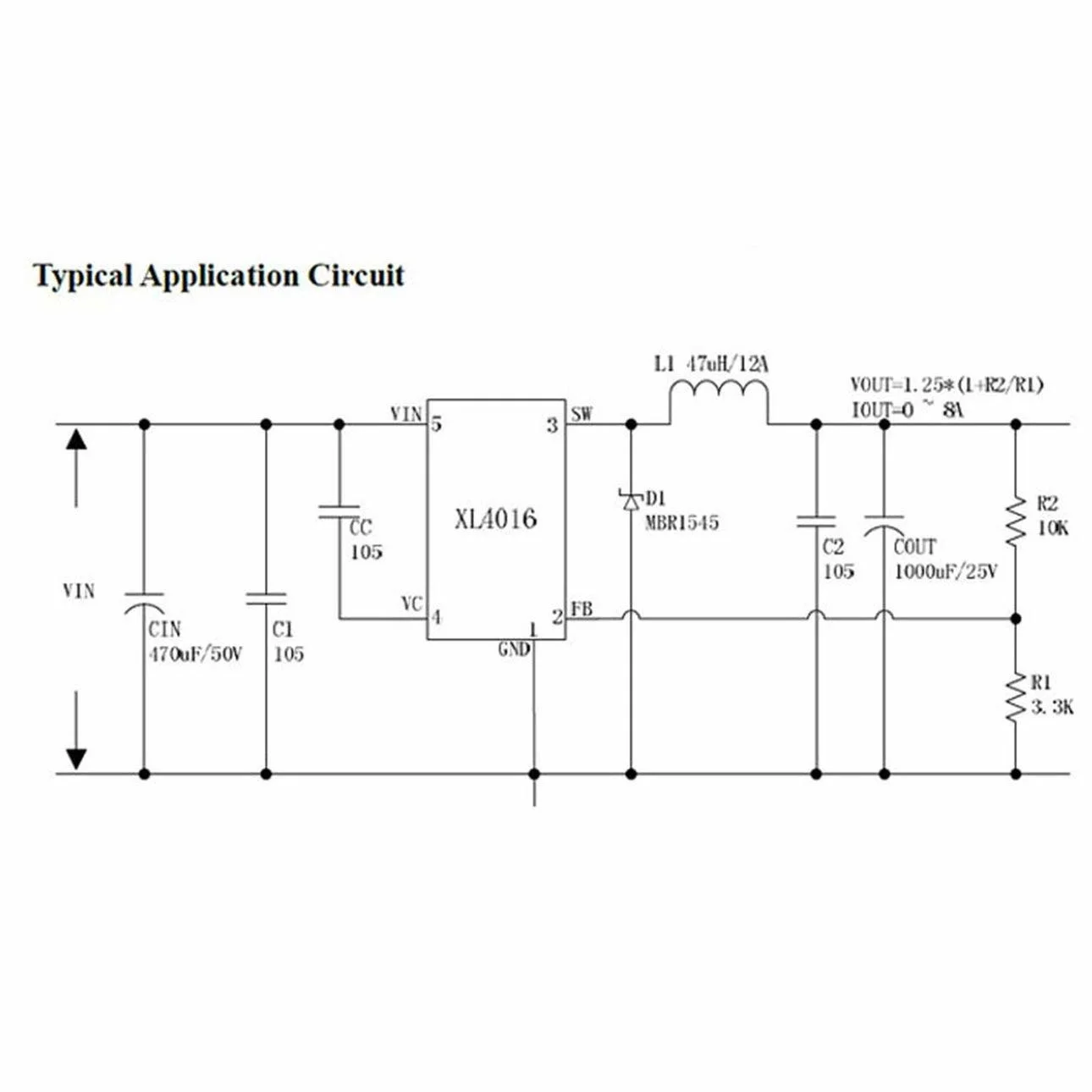 Чип: регулятор переключения, регулирующий чип XL4016 с защитой от перегрузки по току, защита от перегрева, защита от короткого замыкания