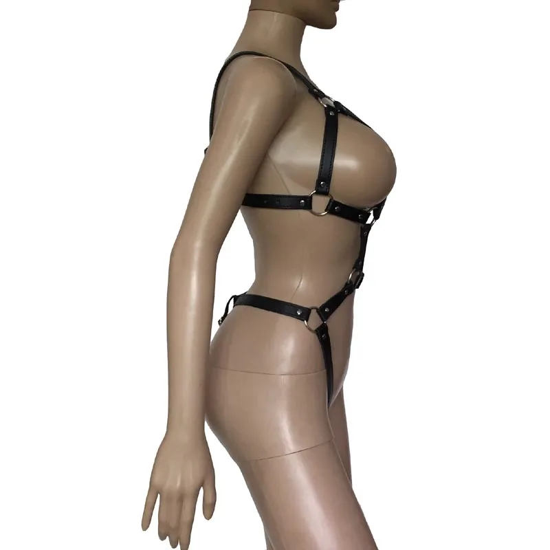 Этот кожаный ремень, который идеально подходит для женщин и подчеркивает их форму, является функциональным и очень сексуальным. Изготовлено из серии прочных ремешки из искусственной кожи, уплотнительных колец и пряжек, этот ремень обнажает грудь и области гениталий, а затем соединяется сзади в одном ремешке, в стиле g-string.