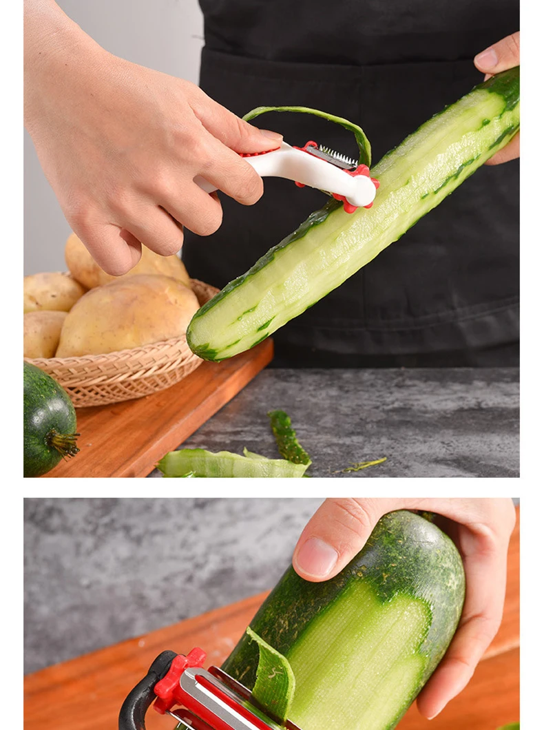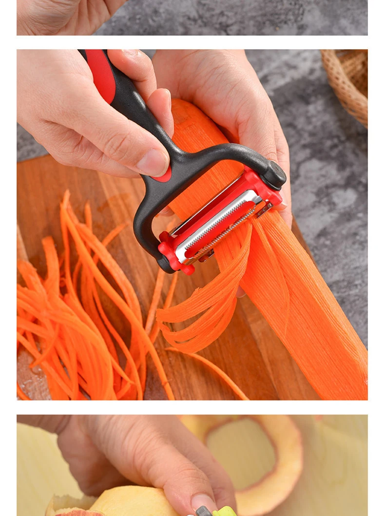 3 в 1 Овощной очиститель, креативный Нож Для дыни из нержавеющей стали, строгальный станок, резиновая и пластиковая ручка, вращающаяся Терка на 360 градусов