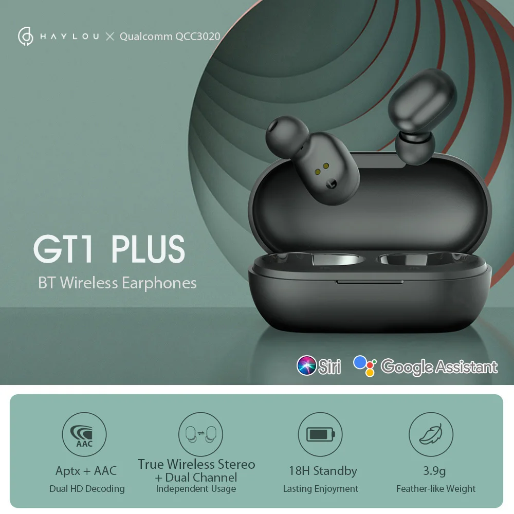 Особенности: Чип Qualcomm QCC3020 BT 5,0 Быстрее и сильнее, чем в прошлом поколении по емкости данных и энергопотреблению. И технология BT5.0. Оснащен лучшей совместимостью и защитой от помех. Декодирование Aptx + AAC Dual HD В сочетании с 7,2 мм биологической диафрагмой GT1 Plus подарит Вам мощный стереозвук. Настоящее беспроводное стерео + Двухканальное независимое использование Умное и удобное соединение с устройствами BT по отдельности, благодаря двум наушникам с одним ядром. Долгое удовольствие 18 часов GT1 Plus может длиться до 5 часов воспроизведения музыки после полной зарядки. С зарядным чехлом 310 мАч, обеспечивающим долгий срок службы 18 часов, отличный компаньон во время поездки. Эргономичная посадка 3,9 г Крошечный корпус 3,9 г с эргономичной посадкой устойчив и удобен в носке. Siri и Google Assistant Двойное нажатие влево/вправо для запуска голосового управления. Водонепроницаемость IPX5 Наушники GT1 Plus с функцией водонепроницаемости IPX5, что означает, что вы можете свободно выполнять напряженные упражнения, не выпадая. Двойная шумоизоляция микрофона DSP + CVC Чип BT GT1 Plus интегрирован с технологией двойного шумоподавления DSP и CVC для осуществления естественного бинаурального вызова HD стерео.