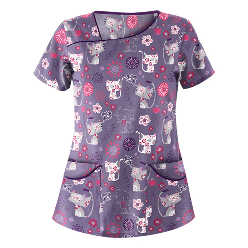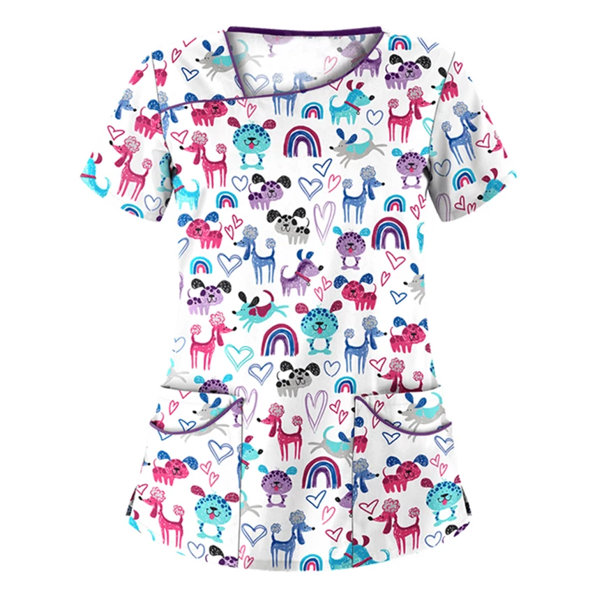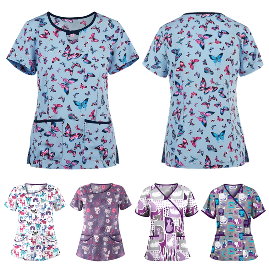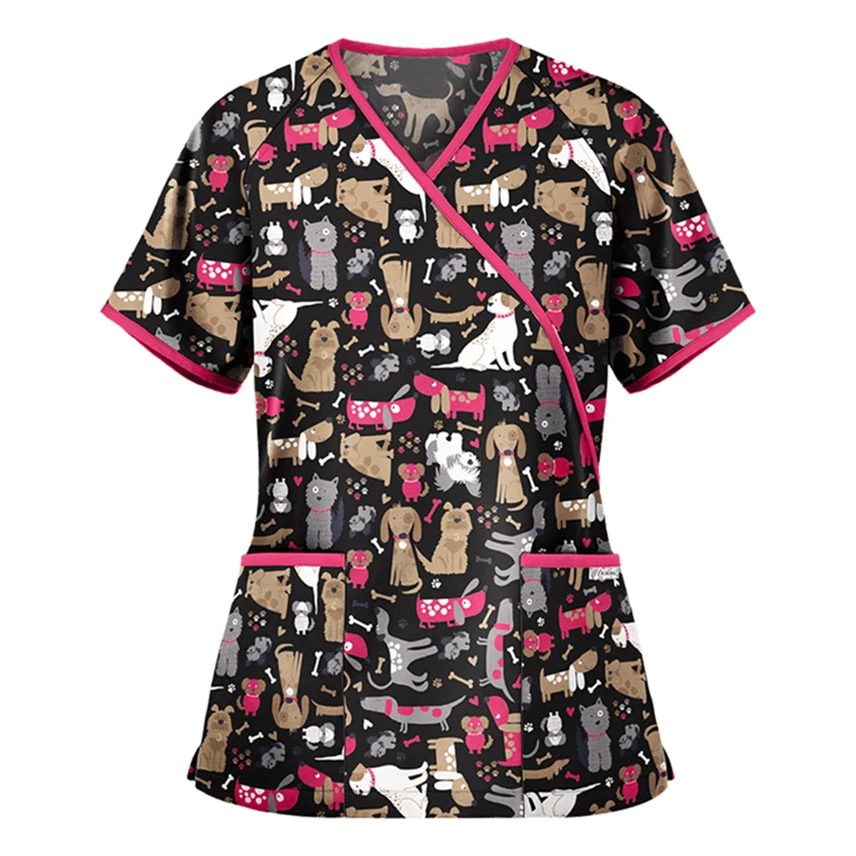 Униформа для медсестры, женская футболка с принтом, стоматология, ветеринарный хирургический Топ, рабочая одежда, одежда для ухода, красивая униформа, рубашка mujer