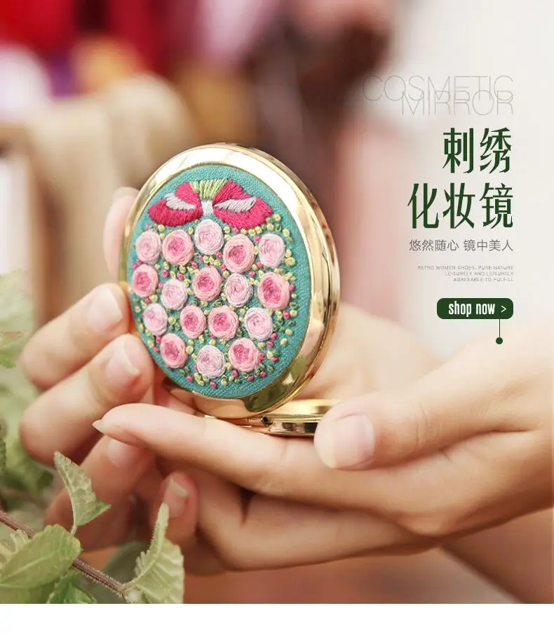 DIY Вышивка, сделать Красивое Ремесло самостоятельно, сшитая часть является зеркальной задней частью, вы можете иметь уникальное зеркало, создав из себя.