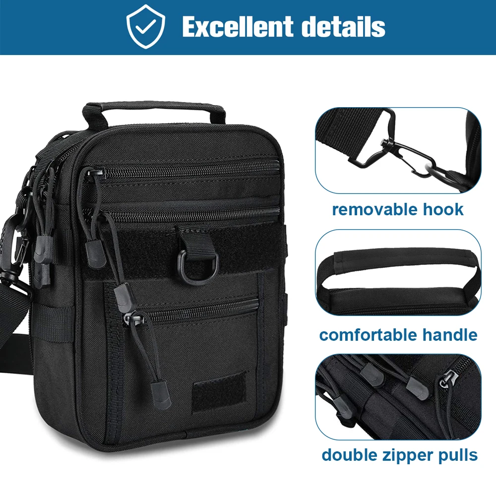 2. Прочная ручка и регулируемый плечевой ремень для переноски; D-образные петли и Молле лямки для крепления аксессуаров.