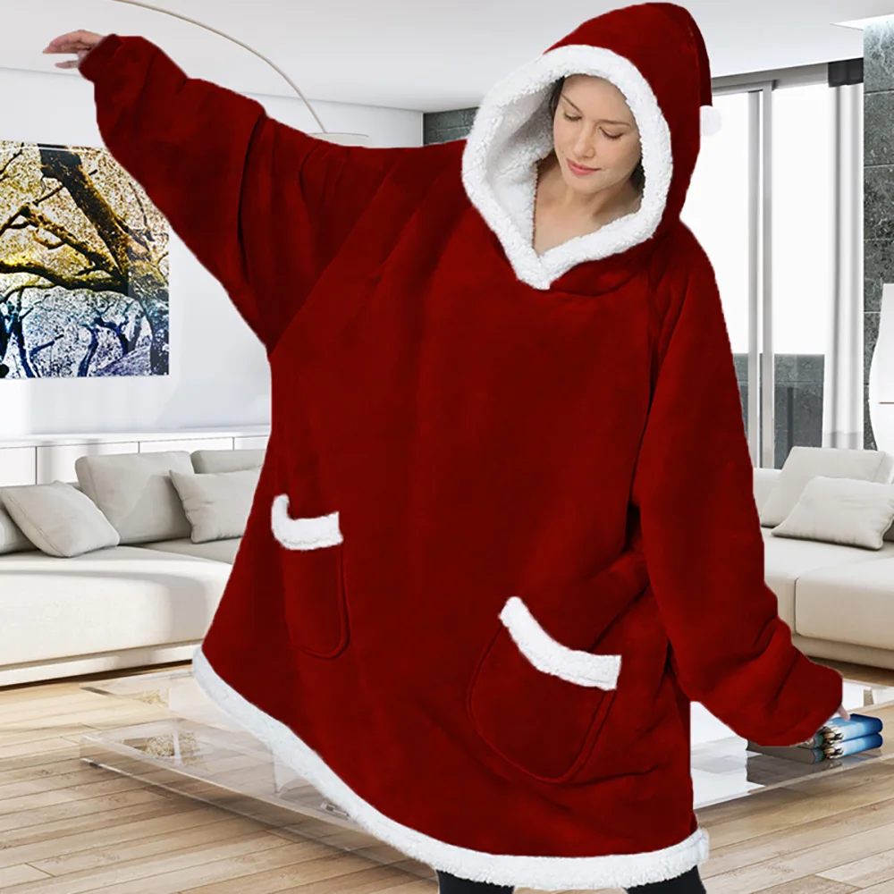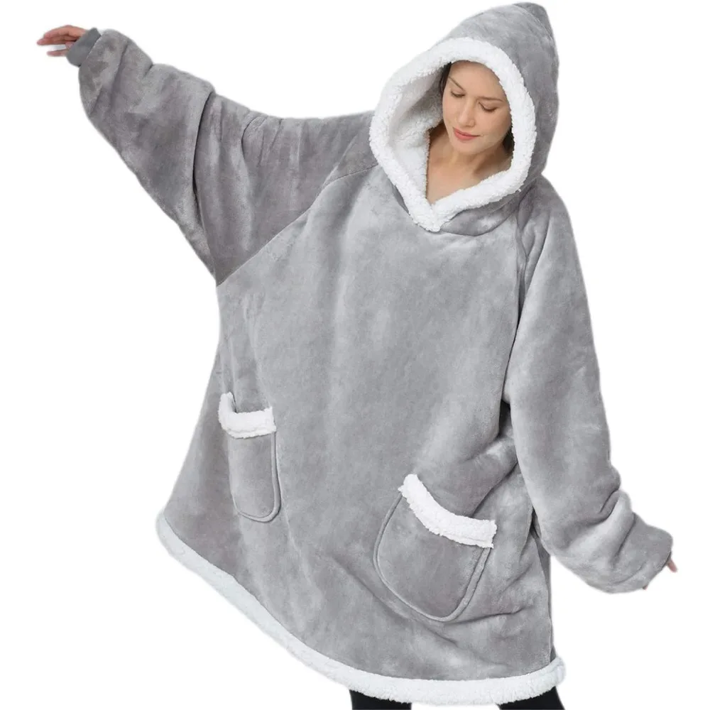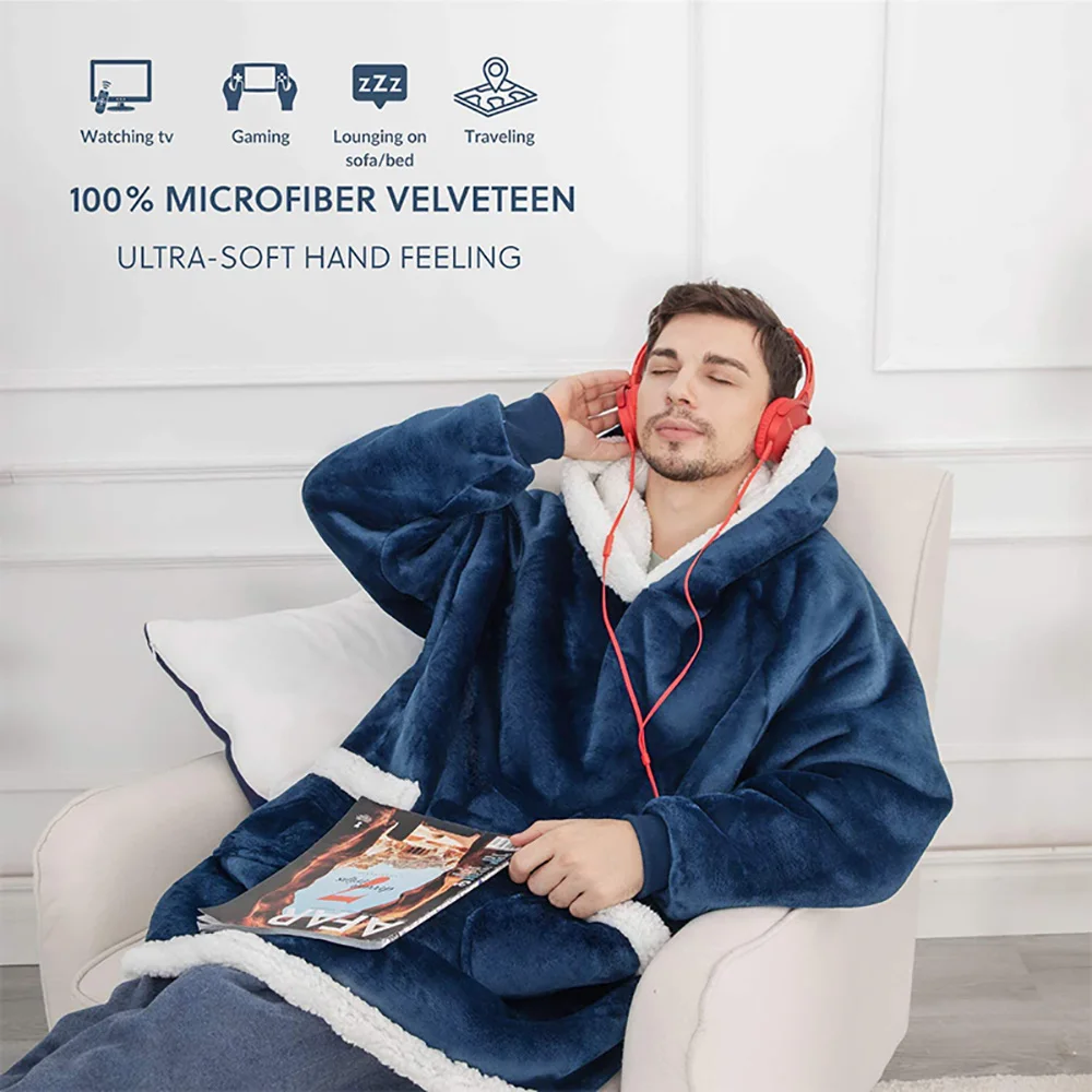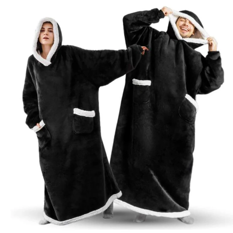 Супер Длинное фланелевое одеяло с рукавами, Зимние толстовки с капюшоном, Толстовка для женщин и мужчин, пуловер из флиса, Гигантское Одеяло для телевизора, одеяло большого размера