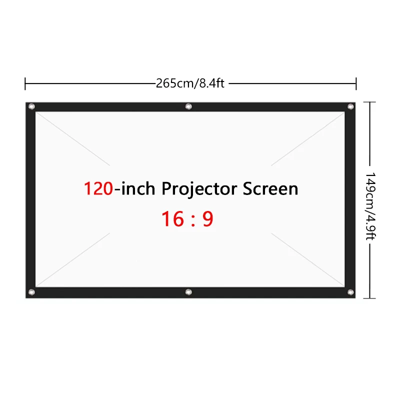Никогда не пропустите наш экран проектора высокого качества, это будет лучшим другом вашего проектора, начните новый способ развлечений. 60/72/84/100/120/150 дюймов HD 16:9 будете смотреть фильмы с Экран изготовлены из натурального полиэфирная ткань. Вы никогда не поверите, что такая маленькая посылка превратится в проекционный экран, вес света и портативность, вы можете сложить его в маленький размер и взять его куда угодно!