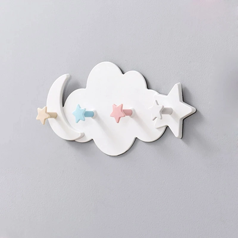 Creative Cute Star Moon Cloud Shape Nail-free Wall Clothes Hooks Kids Room Decorative Key Hanging Hanger Kitchen Storage Hook