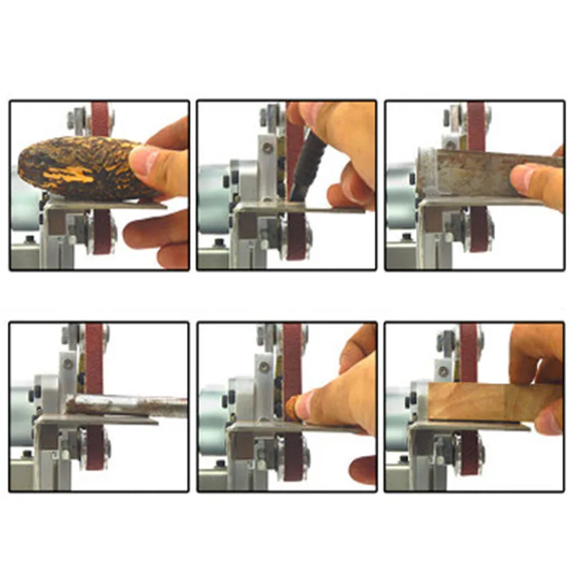 Это многофункциональный ленточный шлифовальный станок с мини-портативным и низким уровнем шума. Он используется для высокоскоростных стальных сверл, грубого помола, обрезного лезвия, шлифовального инструмента из вольфрамовой стали, Полированный корень дерева Бодхи и т. Д. Он прост в установке и эксплуатации. Это бытовой инструмент. Креативность.