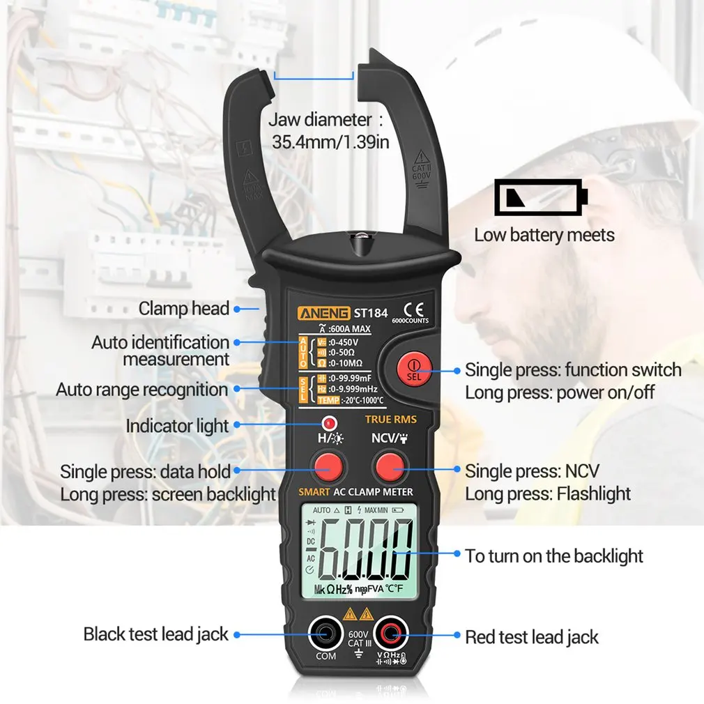 Особенности: 1. Данные измерений визуализируются и записываются через беспроводной мобильный телефон, что помогает нам сделать измерение более удобным и точным. 2. Прочный материал: Этот продукт изготовлен из высококачественного АБС-материала, долговечный и длительный срок службы. 3. Новый Улучшенный профессиональный мультиметр, который может осуществлять дистанционное управление и измерение с помощью беспроводной технологии. Описание: Эта продукция работает от аккумулятора, ture-rms, автоматический цифровой мультиметр с ЖК-дисплеем 6000 и подсветкой. Характеристики: Цвет: красный, черный, желтый (по желанию) Материал: АБС-пластик Диаметр челюсти: 35,4 мм Тип батареи: аккумулятор: No.7 аккумулятор x2 (не входит в комплект) Посылка включает в себя: 1 * Беспроводной мультиметр (аккумулятор в комплект не входит)
