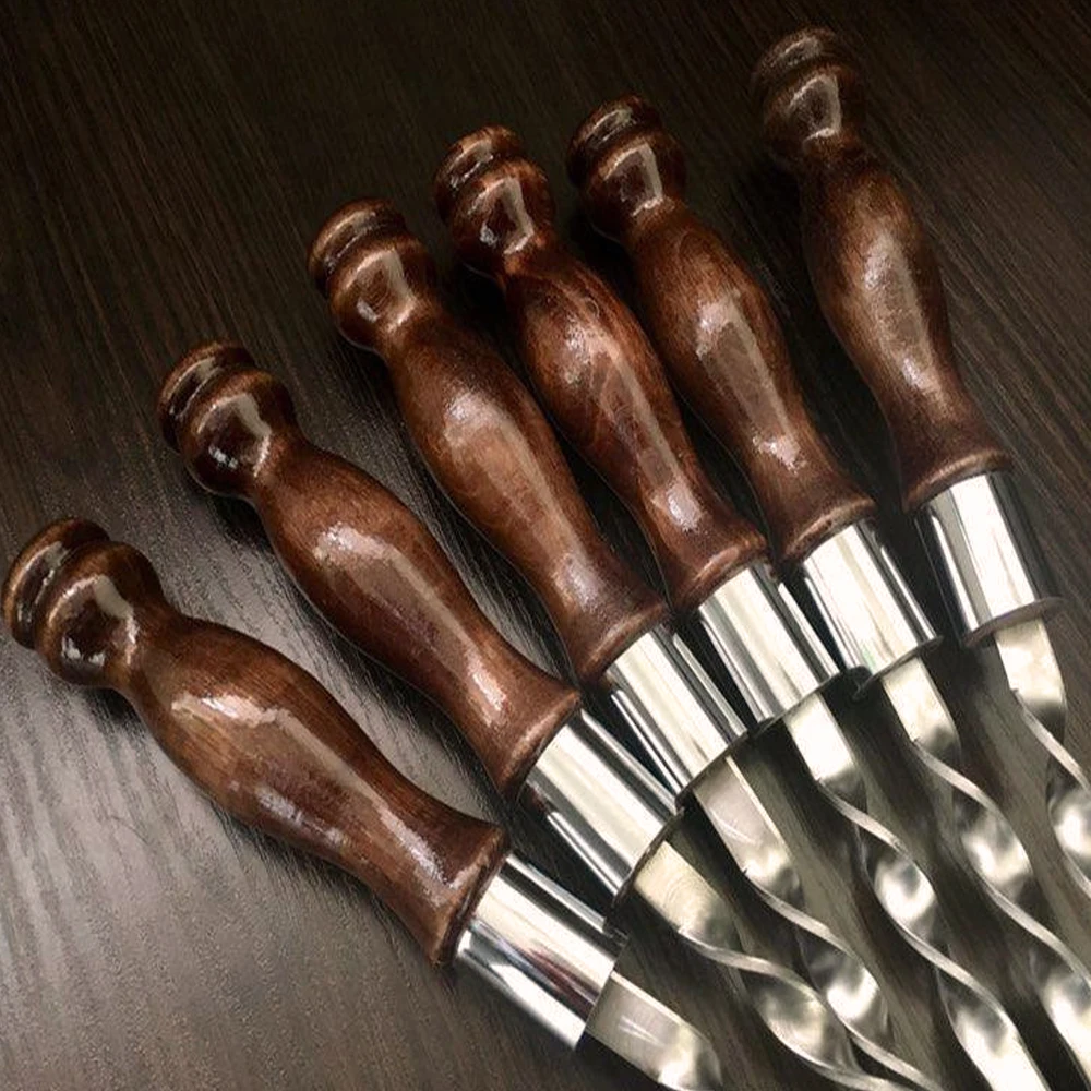 Шампуры с деревянной ручкой и огнеупорным защитным кольцом.
