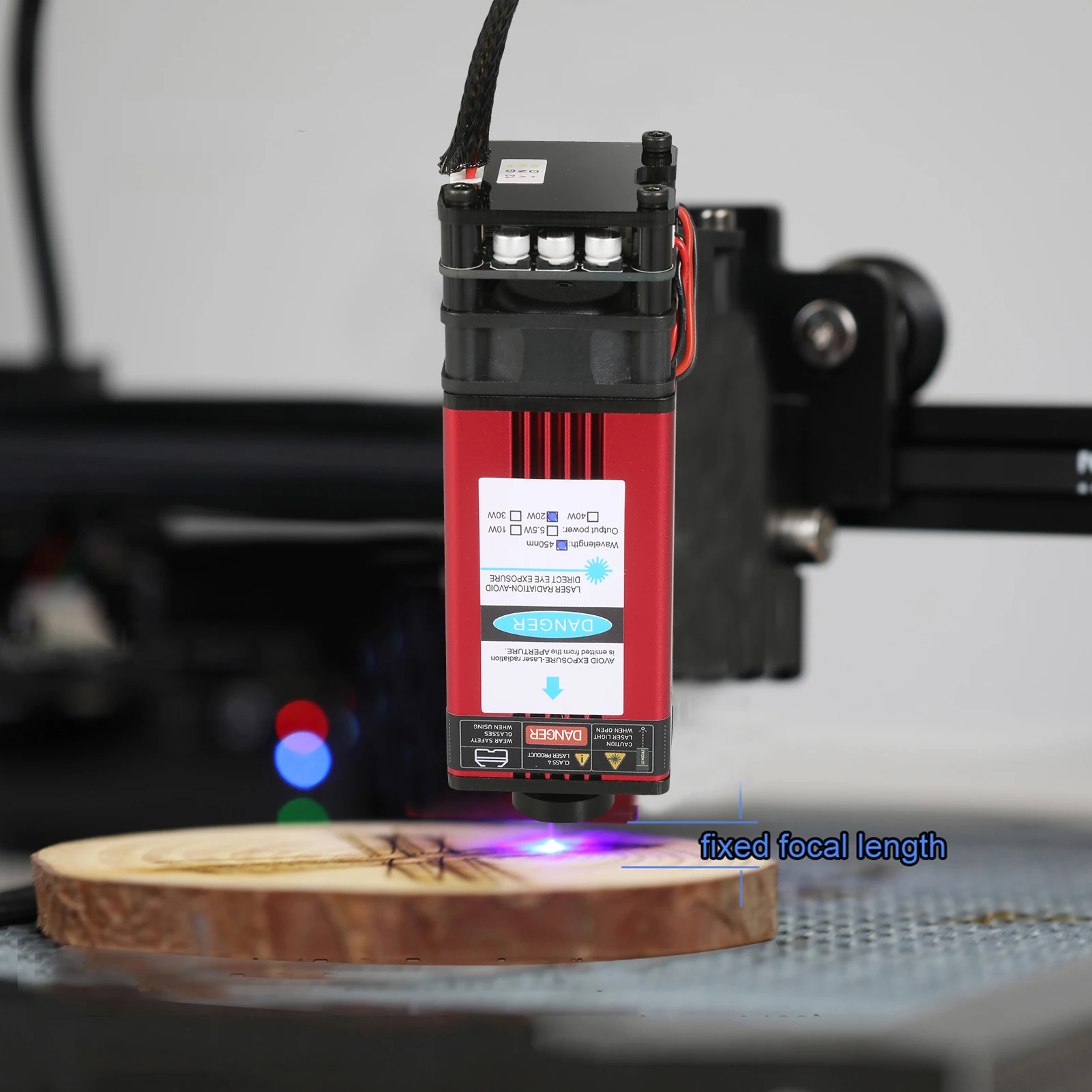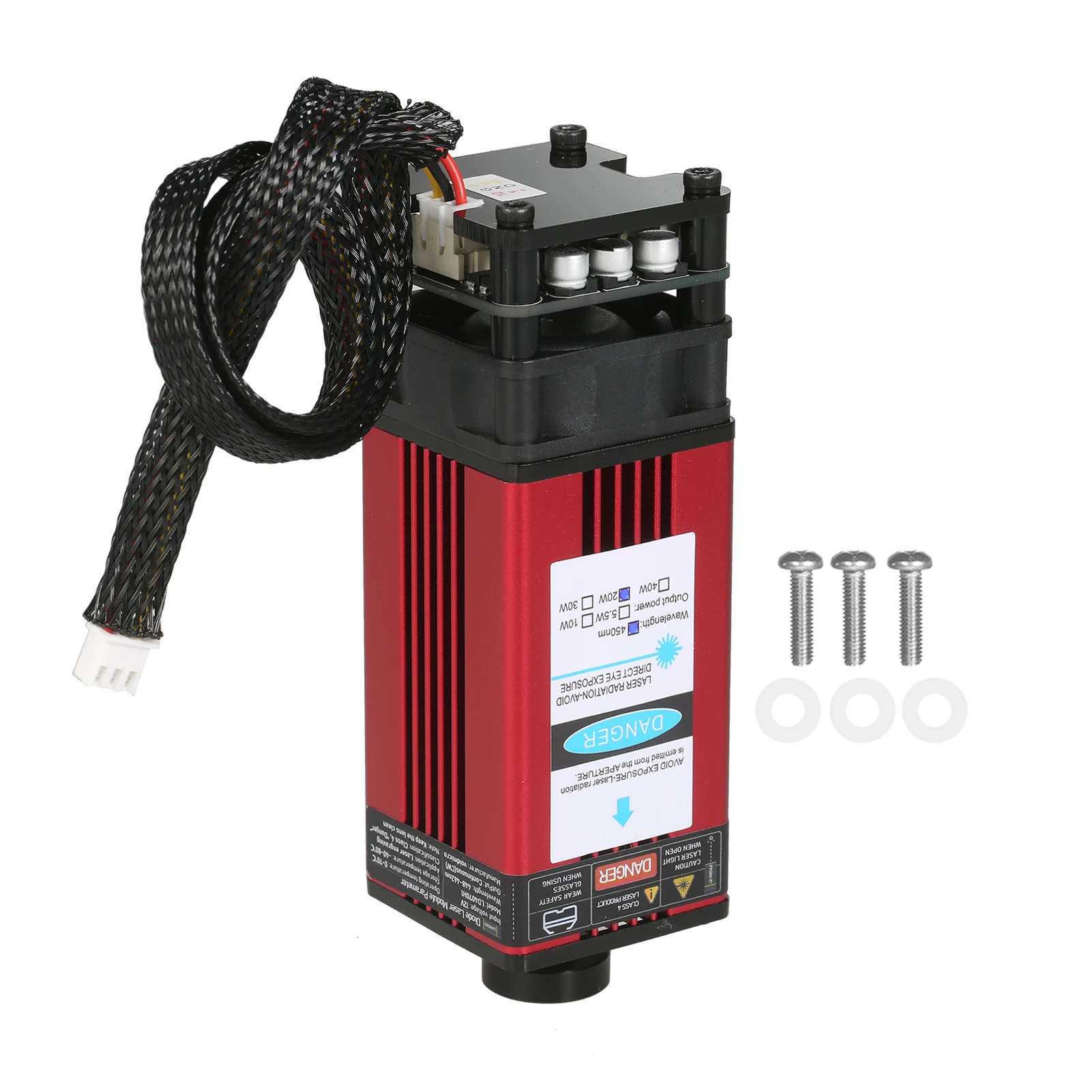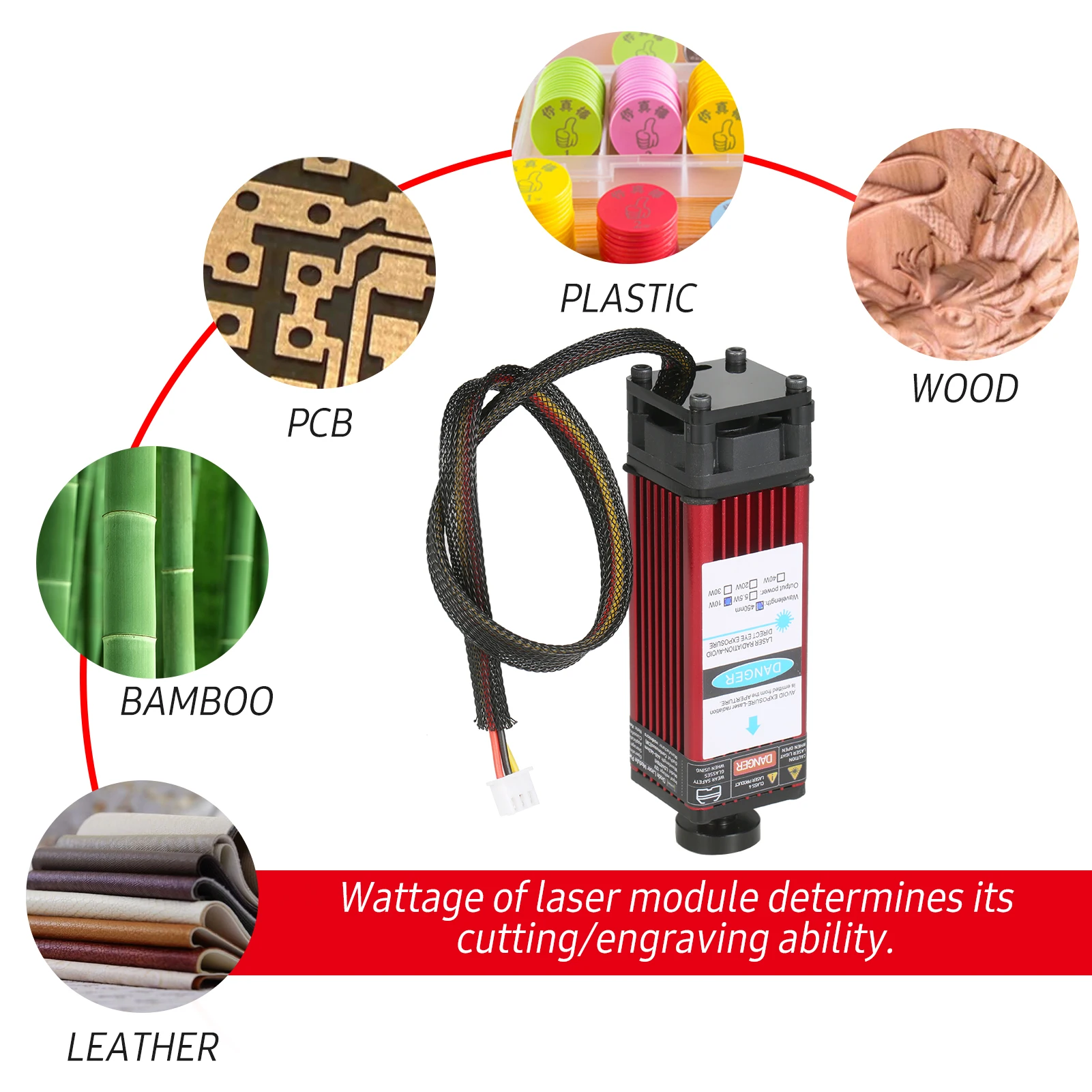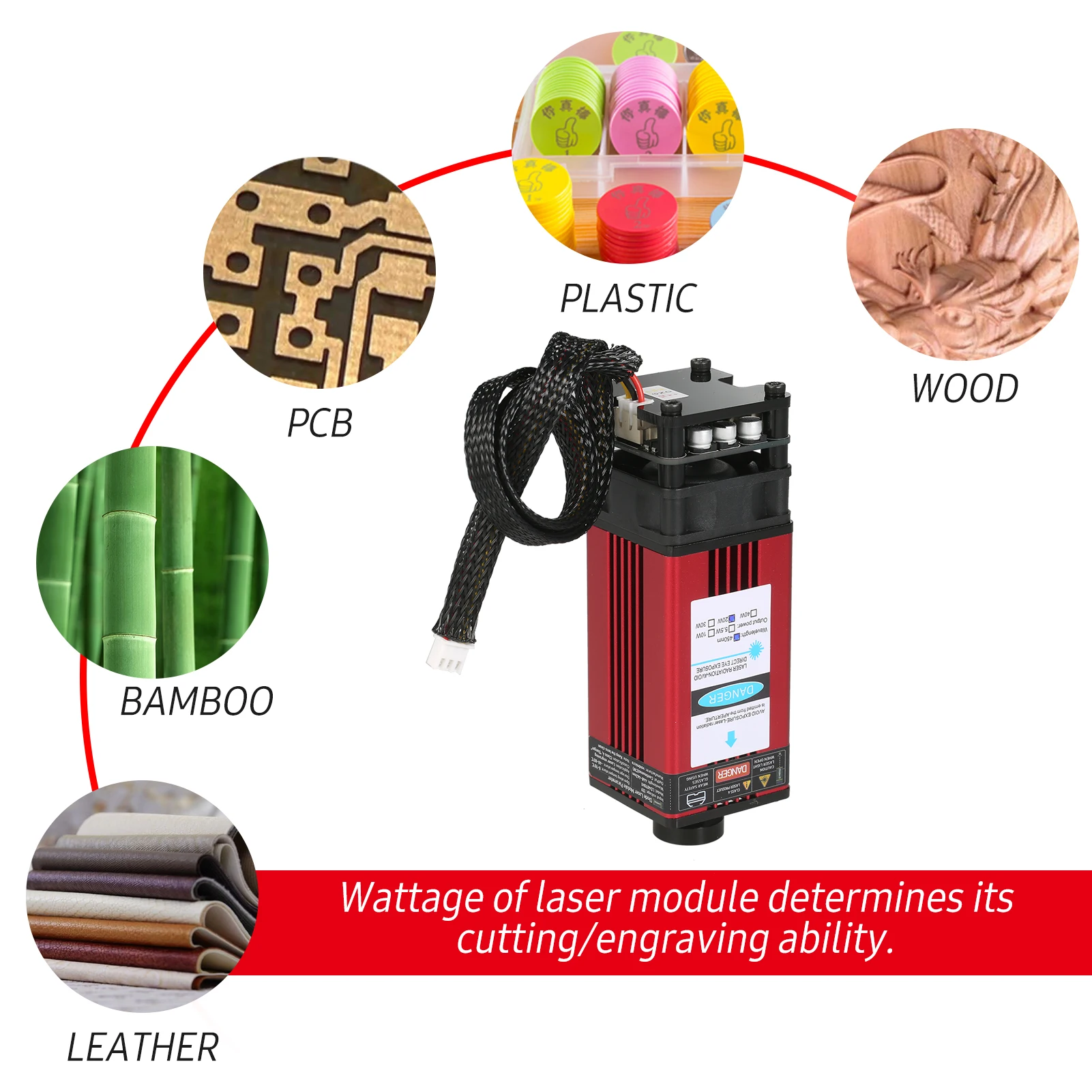 Professional laser module, easy to install, with lower loss, provides 450nm wavelength, for efficient, precise engraving and cutting of plastic, wood, paper and so on, suitable for a wide range of engraving machine.