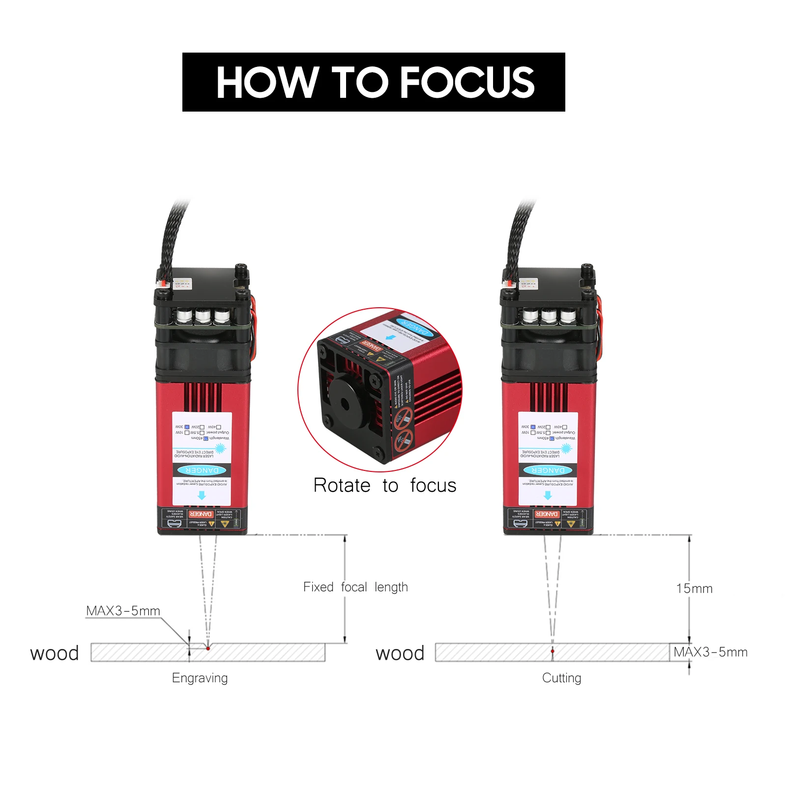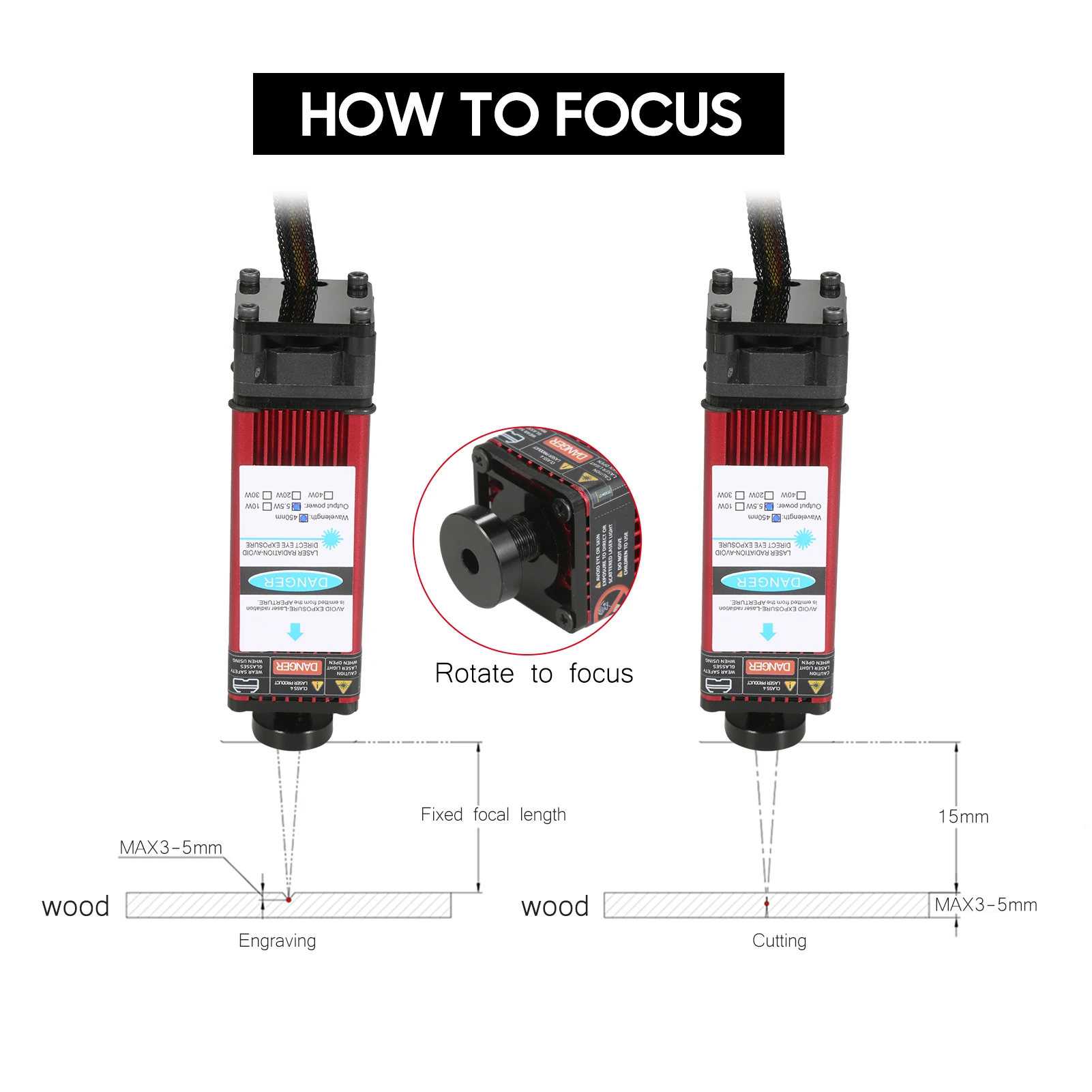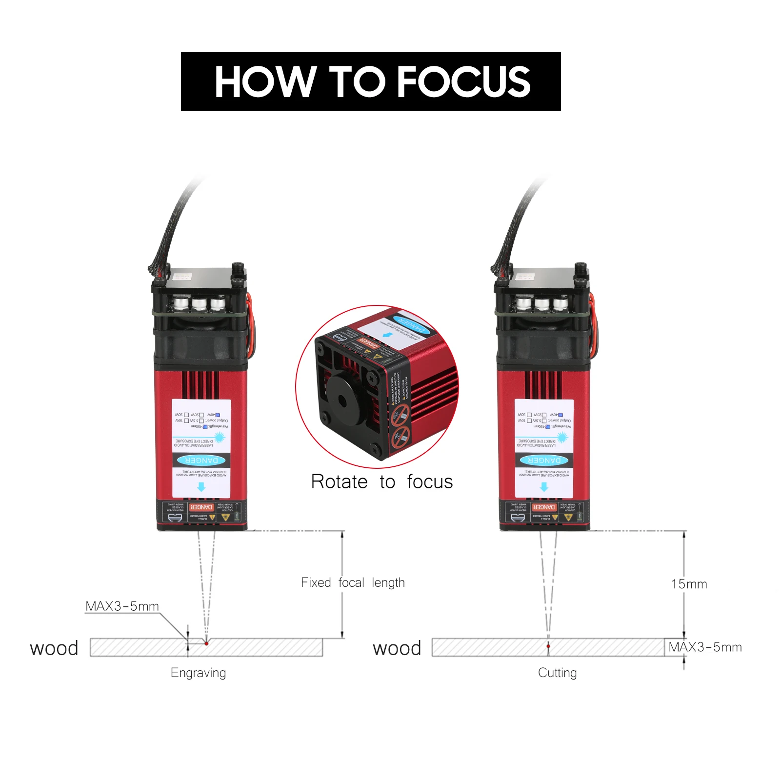 High Quality Material: laser module, features solid durable aluminium alloy shell, high engraving speed, low power loss, stability, long lifetime.