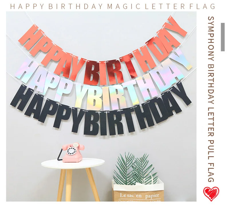 Блестящие лазерные бумажные буквы с днем рождения баннер флаг ребенок день рождения украшения фото стенд партии тянуть флаг повесить поставки