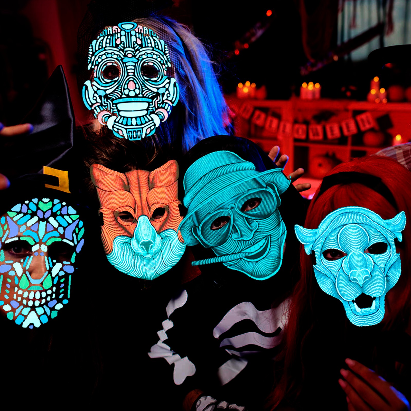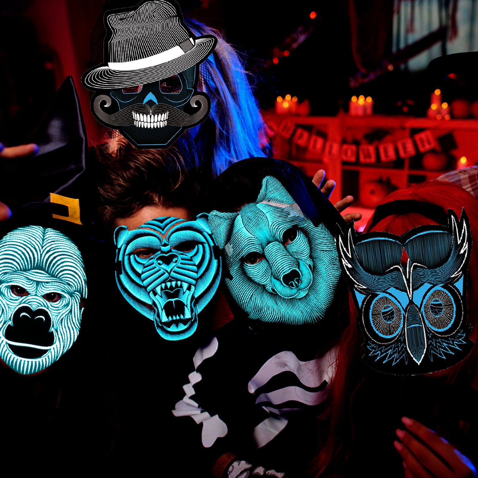 Новый Хэллоуин СВЕТОДИОДНЫЙ маскарадный костюм маскарадные вечерние светящиеся маски косплей светодиодный светильник животные маски предметы для вечеринок вечерние принадлежности