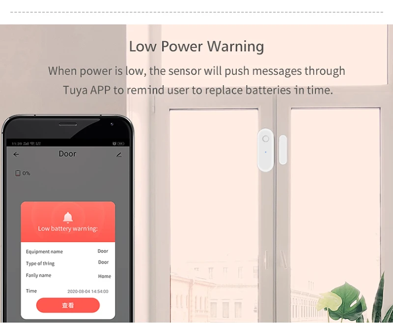 【Обнаружение состояния двери/окна 】когда дверь/Окно открывается или закрывается, устройство срабатывает и нажимает уведомление на телефон.